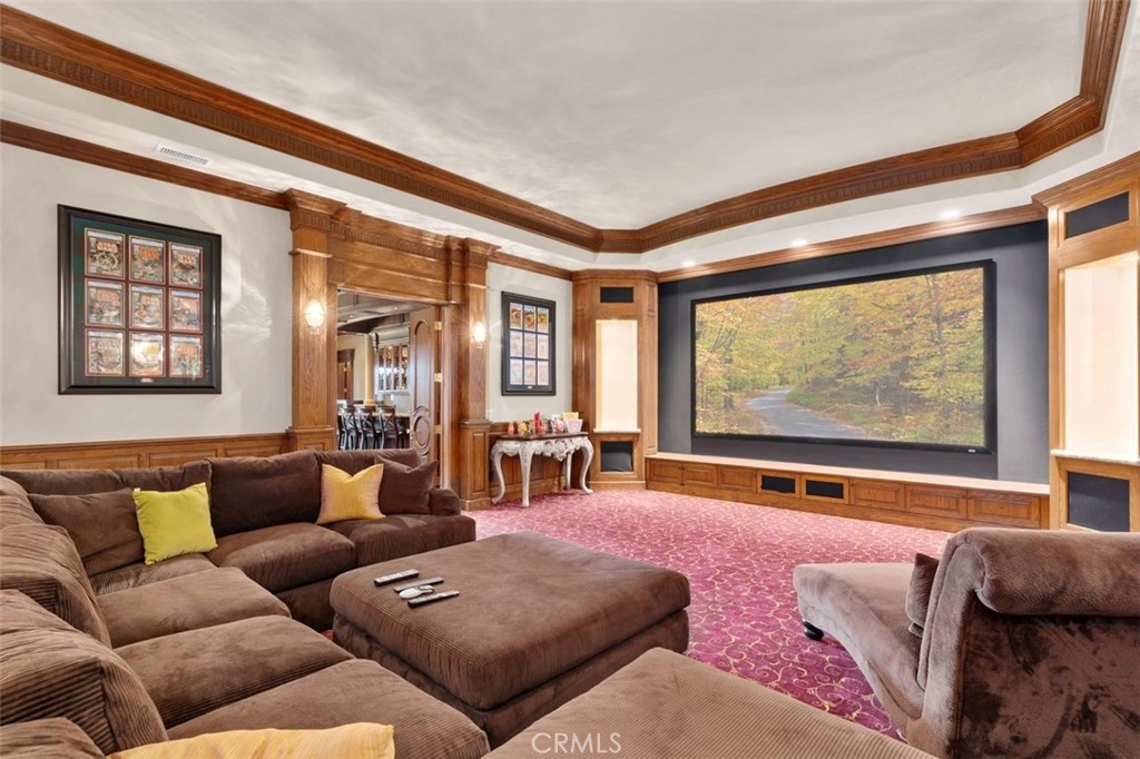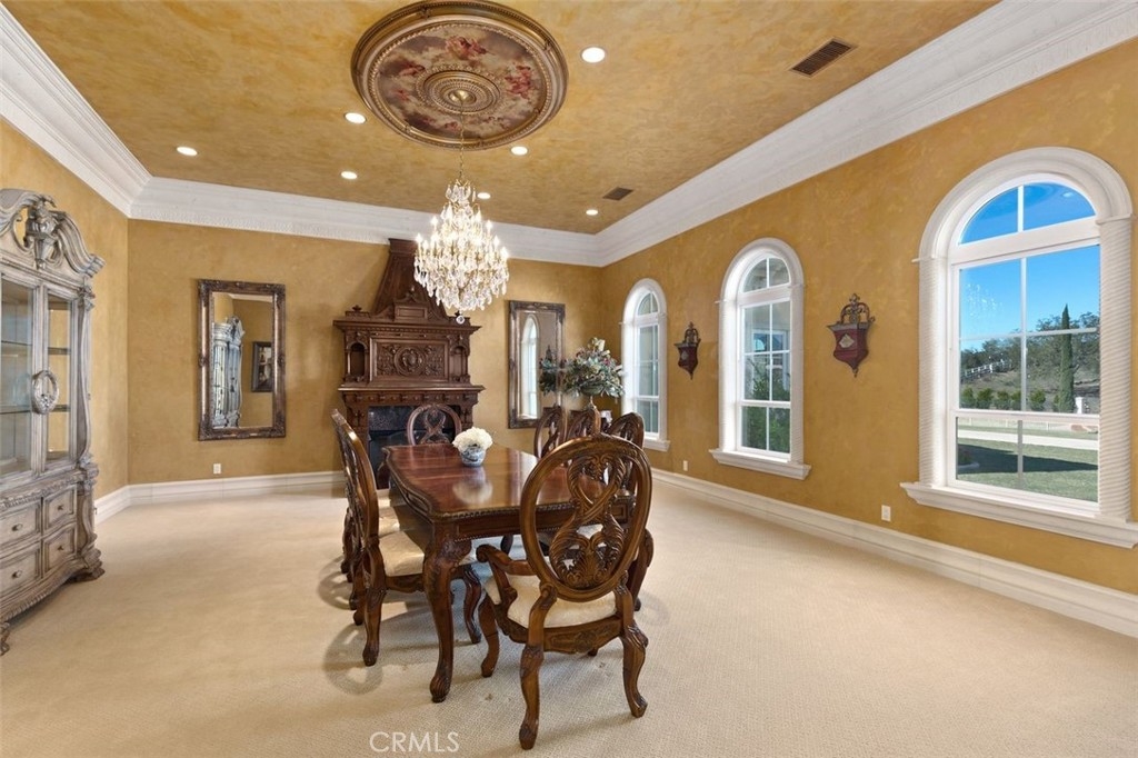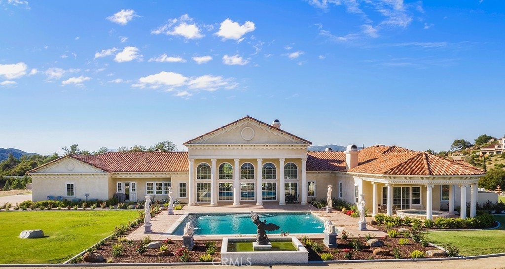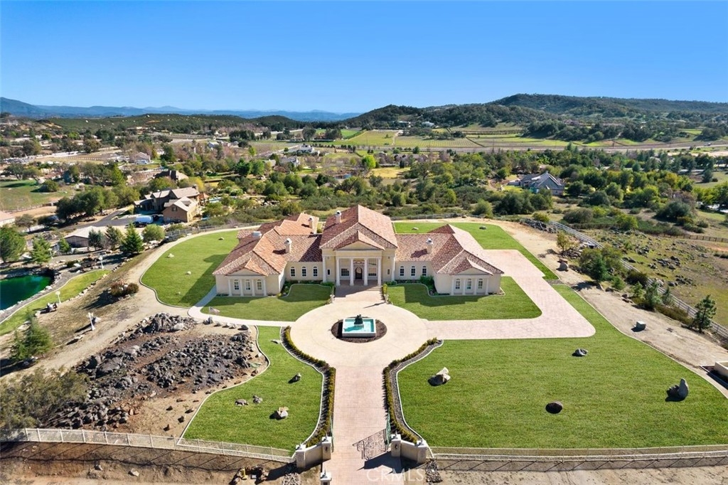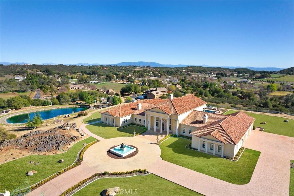 Your shoulders relax as you enter the gates of your country retreat. The stress of city life is gone and you crack a smile at the thought of lounging by the pool, joining the children for a swim or fishing in your private lake. What movie will you watch later in the theater? The dogs are running free in your fully fenced 4.49 acre property and life just seems to feel right. This luxury estate is a place where you can host the most distinguished guests in style with all the delights of a country manor, or you can hide away and enjoy a private vacation with any number of activities available to you. Whether this is your weekend escape, or full-time home, every need can be met here. This single-story estate sits in a commanding position in the gated community of Meadow Oaks, La Cresta. A 10,784 square feet manor masterfully crafted in every aspect offering 5 bedrooms and 8 bathrooms. From the ornate sculptured stone work, the cast columns and pillars, the 12 inch crown moldings, imported European fireplaces, and Swarovski crystal chandeliers, to the custom cabinetry and woodwork. An inviting entertainer's bar and spacious personal theater, or enjoy the majestic outdoor vista of the Santa Rosa plateau from your classic pool or 15 person spa. Your private lake is already stocked so just grab the pole and enjoy. Over 4 acres of flat land including a large level driveway with horse trailer or RV space with oversized five car garage for your collection. It would be impossible to find a rival estate within this region and beyond.