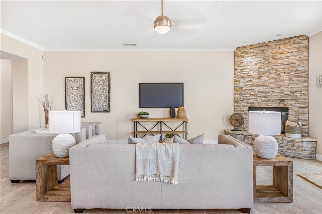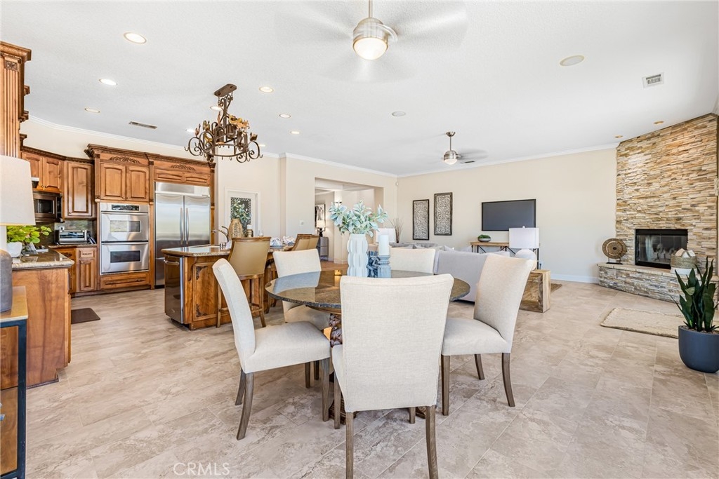 Inside, you’ll find tall ceilings, three fireplaces, and a gourmet kitchen with elegant stone countertops, a large center island, built-in refrigerator/freezer with wine cooler, and a bright, open layout. The home is powered by a fully paid 24-panel solar array that offsets energy use and includes newer dual-zone HVAC for efficiency. The three-car garage offers easy access and ample parking for guests, equipment, or recreational vehicles.