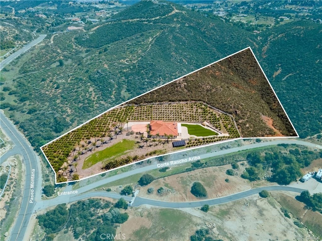 Experience the serenity of country living in the prestigious, nature-rich community of La Cresta on the Santa Rosa Plateau. Tucked behind a private gate and perched atop a winding, tree-lined driveway, this elegant single-level custom home offers sweeping mountain and valley views and over 4.5 acres of privacy, beauty, and potential.