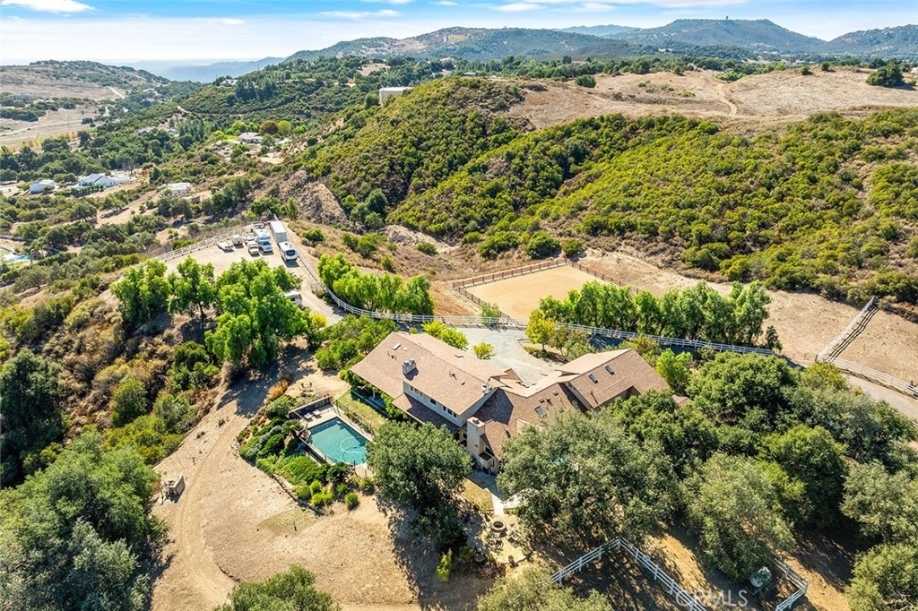15-ACRES!!! EXTREMELY PRIVATE FULLY RENOVATED EQUESTRIAN RANCH IN TENAJA WITH NO HOA (Tenaja is a CSD)! Even though it is just minutes to town, you will feel worlds away at this private sanctuary on the Santa Rosa Plateau, adjacent to La Cresta. Conveniently located off Ave La Cresta, a long driveway leads you past mature ancient oak trees & paid-for solar (with back-up battery walls) to the mostly single-story home w/pool (new salt system & pumps), fruit & shade trees & panoramic view of the Ecological Reserve. It is simply magical! Inside the newly reroofed 4452 sf home is a masterpiece of renovation, including new flooring, a beautifully remodeled chefs’ kitchen (new Thor appliances) & family room w/dramatic fireplace, custom cabinetry & soaring ceiling. Past the kitchen find a laundry room, half bath & adorable dog wash. Also downstairs is the formal dining room w/hand-painted floor, living/game room w/fireplace, large office with its own bathroom (could easily become another bedroom!) & spa-inspired primary suite, w/its own fireplace, ensuite bathroom w/dramatic copper soaking tub & 2 sinks, large walk-in shower & stunning views. Directly outside is the private spa garden w/hot tub, outdoor shower & fruit tree privacy screen. Upstairs are the guest quarters w/bonus living room, 2 ensuite bedrooms & a stunning shower w/surprising “bird’s eye” views of the Plateau. The attached garage includes RV space, 50-amp outlet, septic clean-out & spacious finished walk-up attic. …Explore the grounds and find a massive ocean-view pad – perfect for future ADU. Continue your tour to the: 120’x100’ arena; 60’ round pen; 60’x 20’ workshop; 4-stall barn w/paddocks, tack & wash rack; hay barn; 2 additional 24’x24’ covered pens; 3 pastures; chicken coop; seasonal stream & pond. And for your guests – an adorable 1-bedroom apartment w/kitchen, bath, cozy living room & an epic, unobstructed view of the Santa Rosa Plateau Nature Reserve. This is a very special place - Come experience it! ***** 5-acre minimum parcels (10-acre min in SR West), just minutes to schools, restaurants, hospitals, grocery stores, 15 Fwy & Temecula Wine Country. Enjoy this peaceful ranch community w/no commercial businesses, robust social activities, miles of private community trails & 1000s of acres of Ecological Reserve…All less than 1.5 hours from LA, SD, OC, Palm Springs & Big Bear. Discover the country, yet convenient, lifestyle of La Cresta, Tenaja & the Communities of the Santa Rosa Plateau!