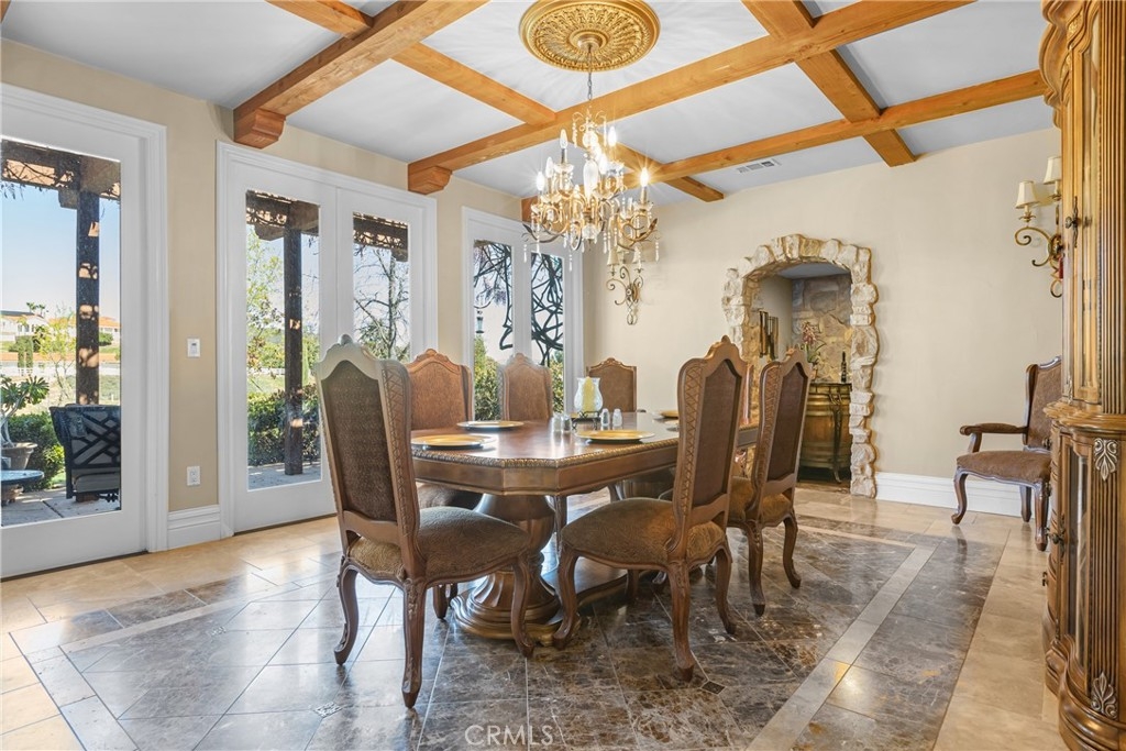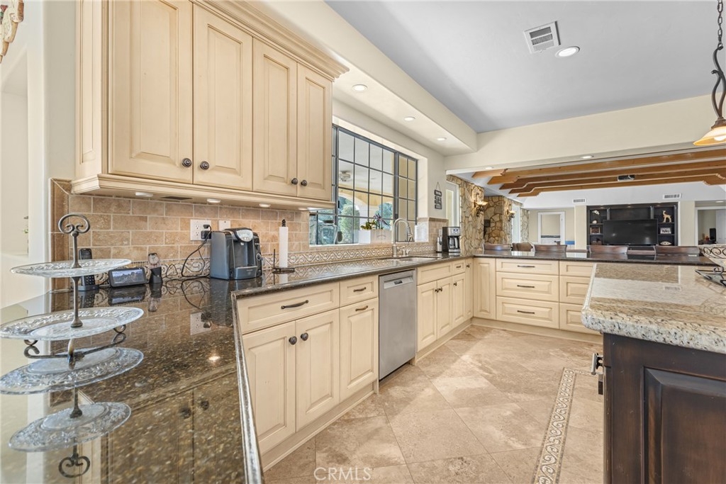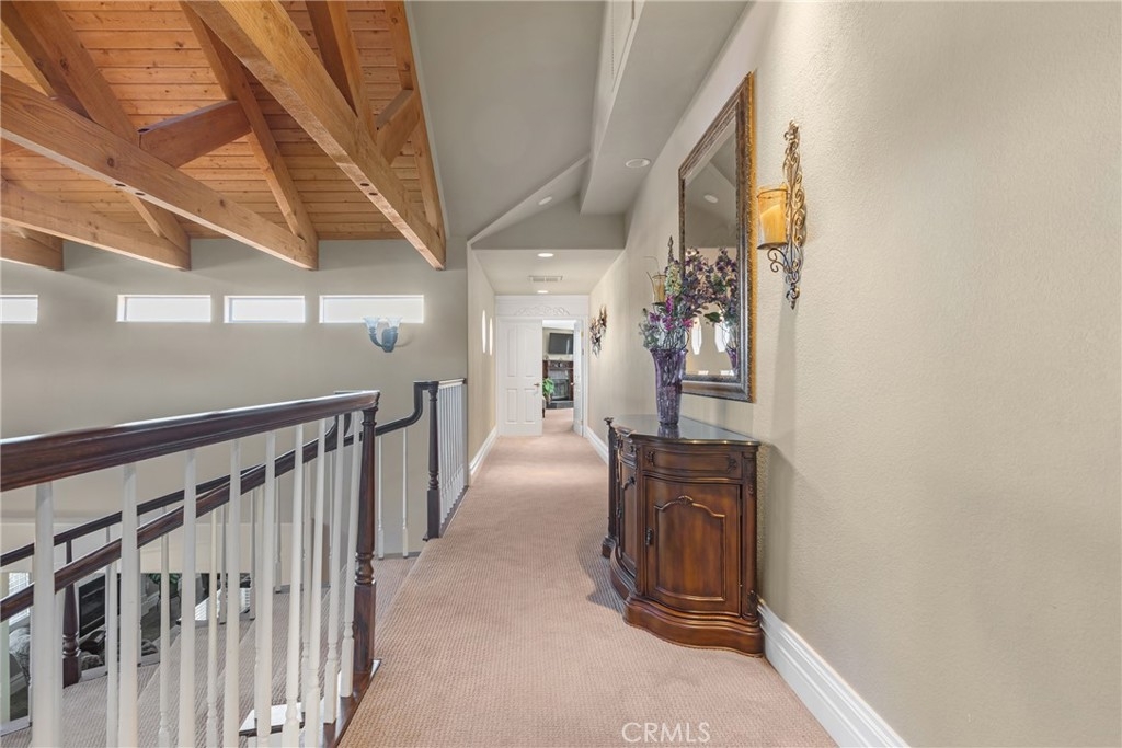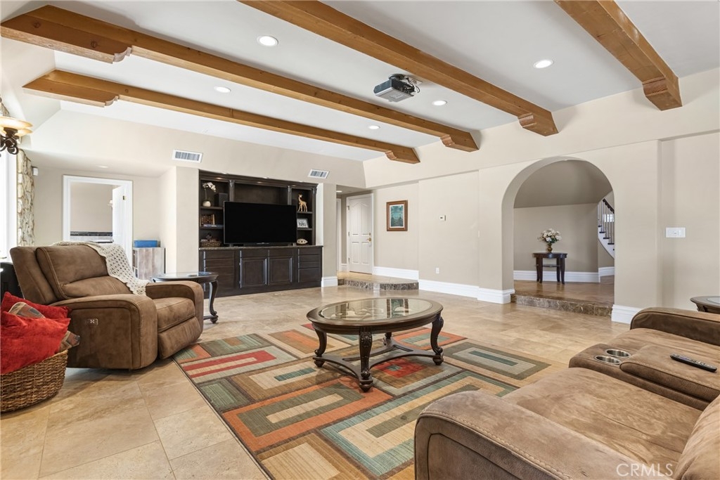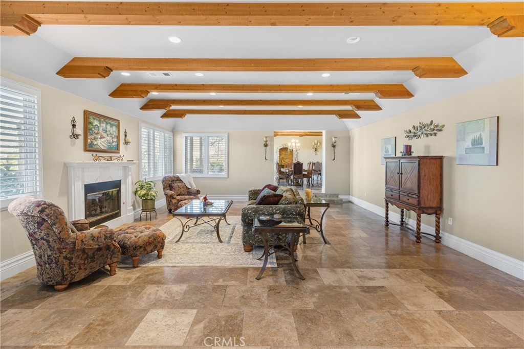 The heart of the home is the chef’s kitchen, featuring premium appliances, custom cabinetry, and an expansive island. The open family room boasts beamed ceilings and an impressive fireplace, creating a warm, inviting atmosphere. Also downstairs is an en-suite bedroom and bath with its own entrance, and a large laundry room with deep sink and ample cabinetry.