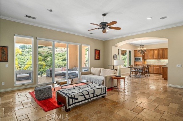 PERFECT LOW-MAINTENANCE ESTATE!!! A WONDERFUL COMBINATION OF PRIVACY, MULTI-GENERATIONAL USE, LOW MAINTENANCE & TURNKEY LUXURY IN LA CRESTA! This home is one of the rare opportunities on the Santa Rosa Plateau to own 5 acres, but without the maintenance. “Lock-and-Leave” properties here are rare, making this a perfect weekend retreat, family vacation estate, or full-time residence for those who want the ultimate in privacy and serenity, yet not wanting the responsibility of working the land. This beautiful estate offers a mature fruit orchard and pristine garden area, with most of the manicured grounds on low-maintenance drip systems, high-end turf, tasteful hardscape and room to further expand the agriculture, if you desire. There is also ample room for an ADU, pool house or workshop. The home’s unique floorplan is conveniently set up as two independent spaces - The primary floor hosts the main living areas, dining room, outdoor living room balcony, ensuite primary bedroom, laundry, 3-car garage and chefs’ kitchen with high-end appliances, butlers pantry and extra-large walk-in pantry. Down a stairway, accented by a custom iron gate, you will find another living room, 3 additional bedrooms, massive closets, and a spacious gym, which would also make a great theater room. From the lower level, walk out to the private patio and access the grounds, which include an authentic bocce ball court and fabulous pool with dining deck. The entire estate (inside and out) is equipped with sound and alarm systems, high ceilings, and on-trend details, making it not just turnkey luxury, but a festive home to share with friends and family. Expansive views, almost no traffic, peaceful location, and wide-open spaces with lots of parking compliment this INCREDIBLE TURNKEY ESTATE! *****SANTA ROSA PLATEAU: 5-acre minimum parcels (10-acre minimum. in SR West), just minutes to schools, restaurants, hospitals, grocery stores, 15 Fwy & Temecula Wine Country. Enjoy this peaceful ranch community w/no commercial businesses, robust social activities, miles of private community trails & 1000s of acres of Ecological Reserve…All less than 1.5 hours from LA, SD, OC, Palm Springs & Big Bear. Discover the country, yet convenient, lifestyle of La Cresta, Tenaja & the Communities of the Santa Rosa Plateau!
