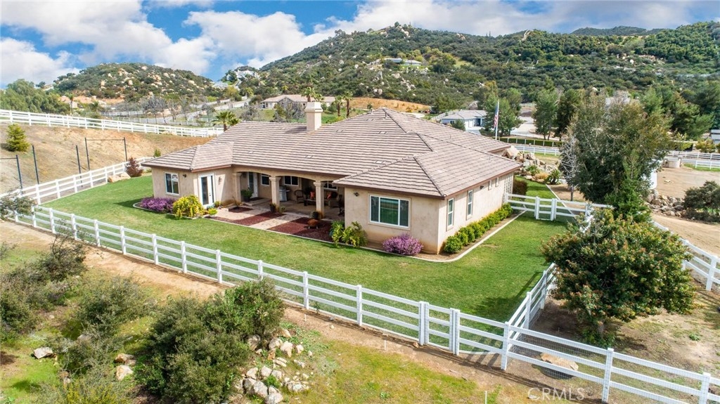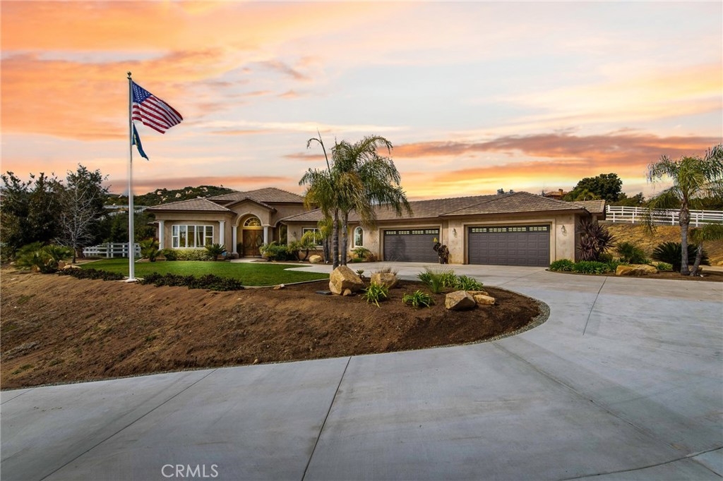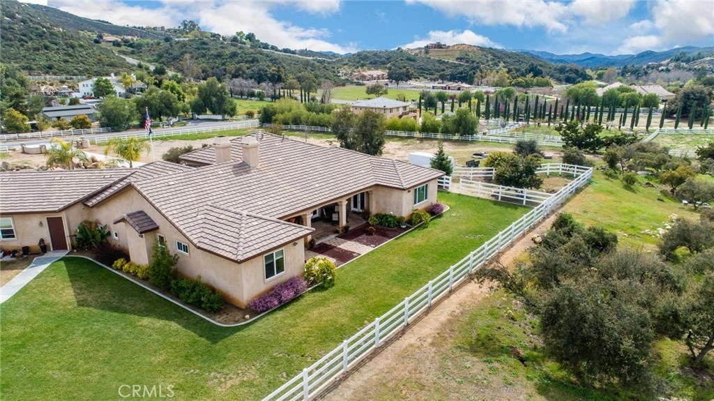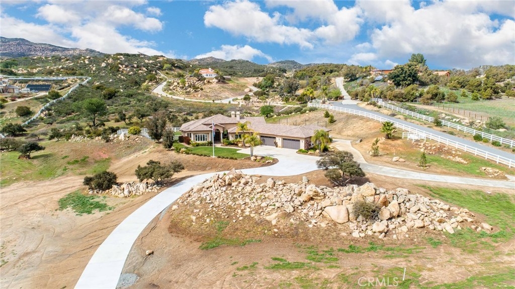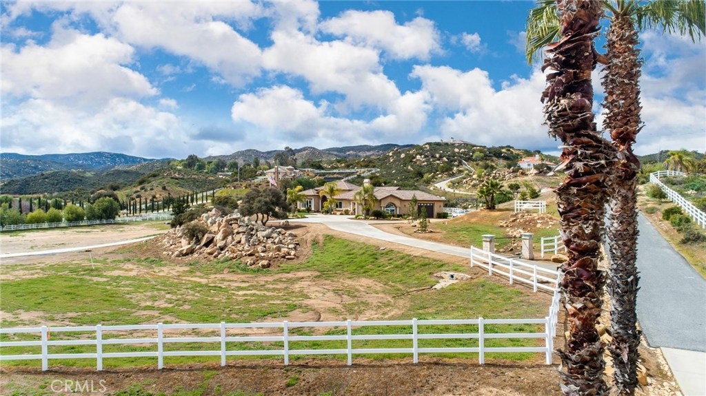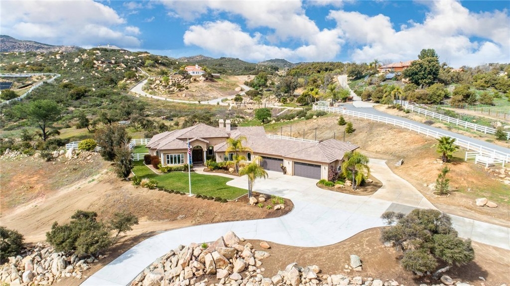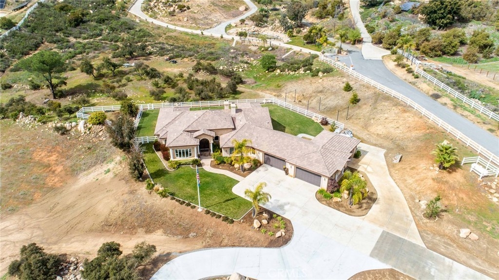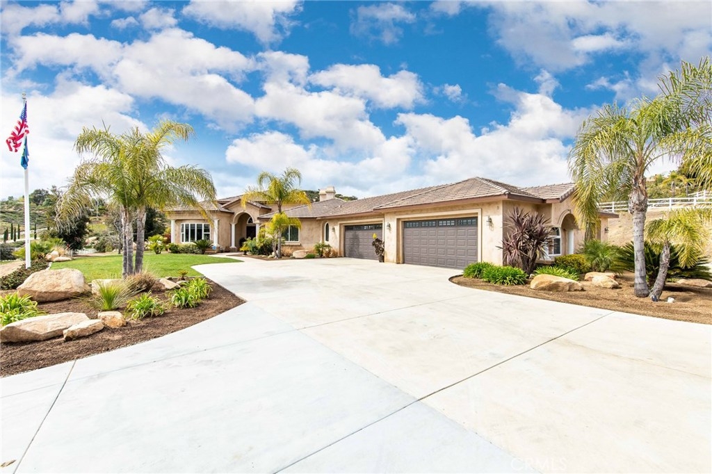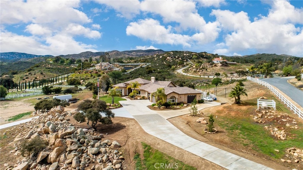 {{{SOCIAL DISTANCING? NO PROBLEM! Watch Video & 3D}}} Situated within a private enclave of custom equestrian homes, this richly appointed La Cresta estate is an architectural work of art! Classically inspired & sited on 6.4 acres of total privacy, this masterpiece takes full advantage of the awe-inspiring views that exist here. Appointed with superior craftsmanship, the home displays soaring vaulted, coffered & trey ceilings. Floors of hardwood, imported travertine & luxurious carpet adorn & transition its many spaces. Amenities include an extraordinary gourmet kitchen with state-of-the-art commercial appliances, center islands & secondary island offering bar seating -all accented by spectacular granite counters. A formal living room features breathtaking stack-stone fireplace & easy access to a covered patio. A formal dine opens to a family room that offers a wood-burning cast-iron stove. All the bedrooms are generously sized & one of them is a junior suite featuring its own private bath. A master suite encompasses the entire west wing & offers a magnificent bath with separate shower /tub & dual sink vanity- all dressed in natural stone finishes. Outside you’ll find 2 automatic gates with 2 long driveways that lead to the heart of the property. Lots of room to build your dream pool plus several acres of flat usable land is ideal for barn, corals, turn-outs or guest house! RV PARKING WITH FULL HOOK-UPS & A TRUE 6- CAR GARAGE WITH WORKSHOP! AMAZING!