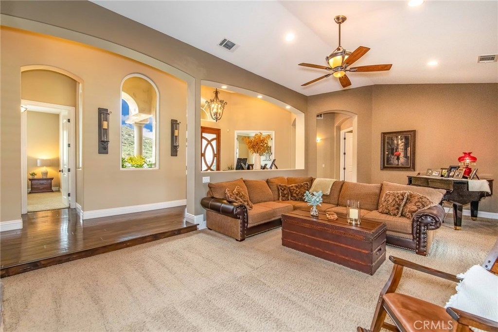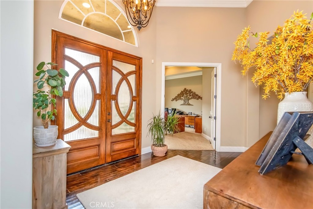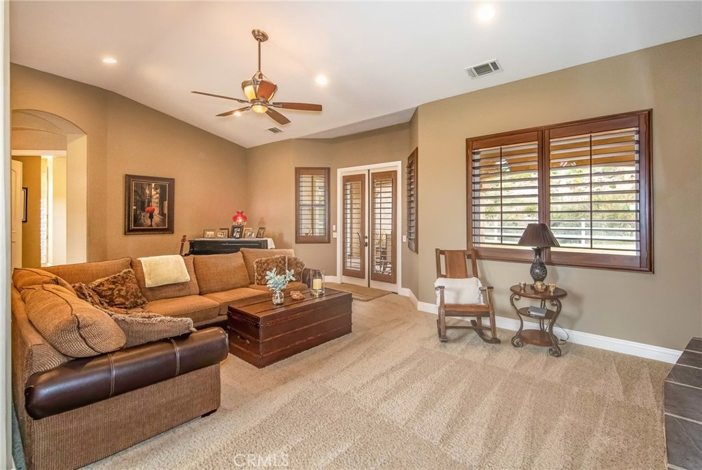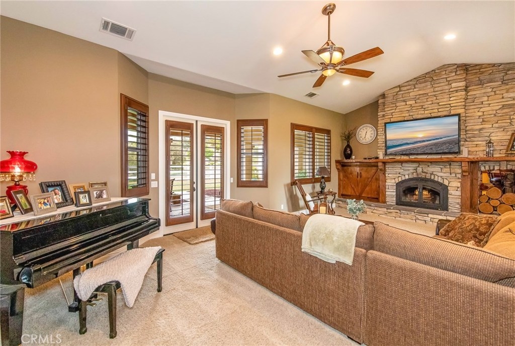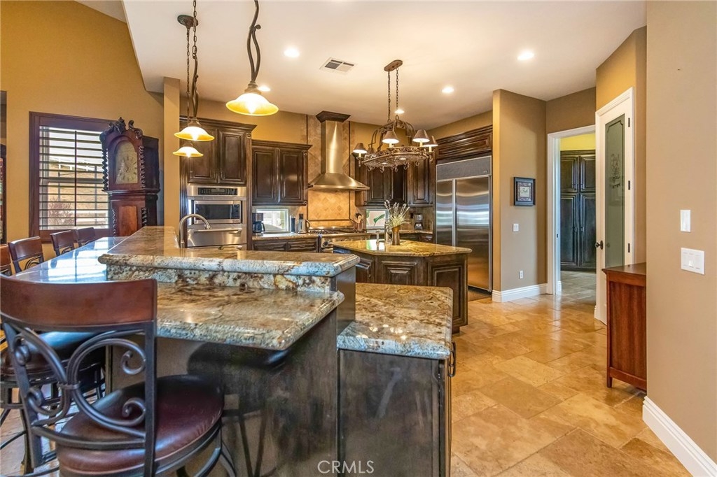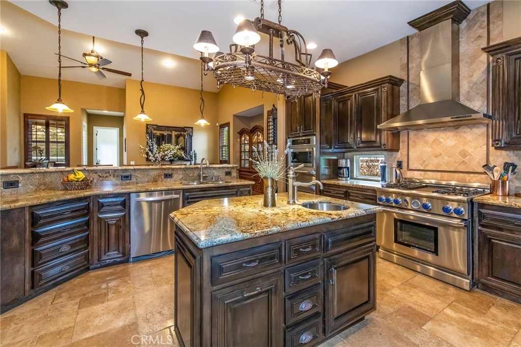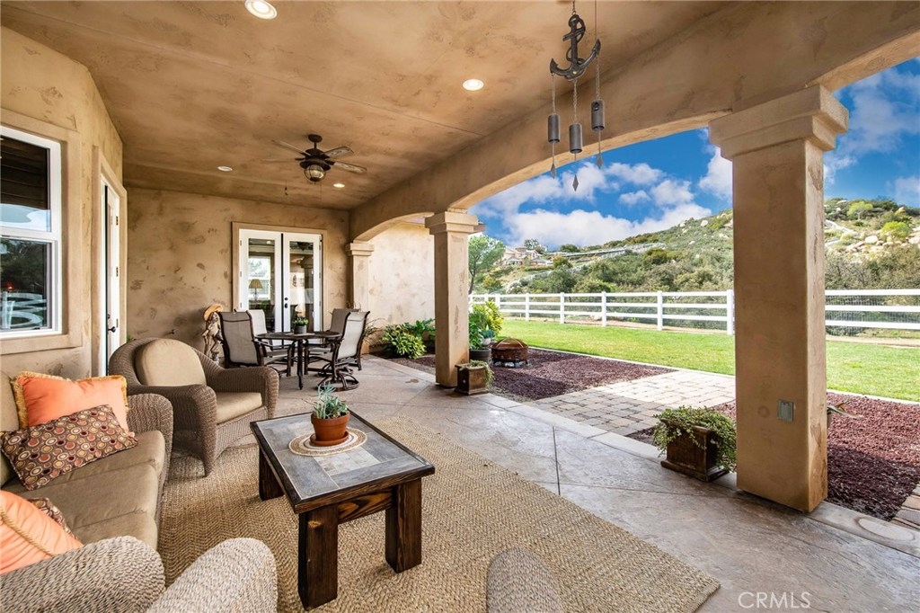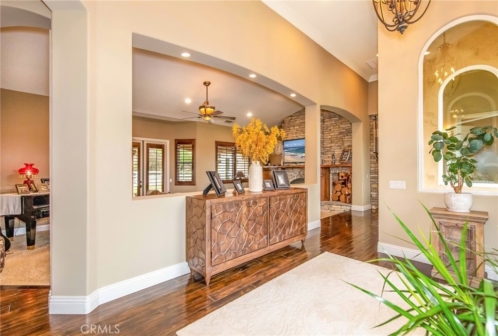 {{{SOCIAL DISTANCING? NO PROBLEM! Watch Video & 3D}}} Situated within a private enclave of custom equestrian homes, this richly appointed La Cresta estate is an architectural work of art! Classically inspired & sited on 6.4 acres of total privacy, this masterpiece takes full advantage of the awe-inspiring views that exist here. Appointed with superior craftsmanship, the home displays soaring vaulted, coffered & trey ceilings. Floors of hardwood, imported travertine & luxurious carpet adorn & transition its many spaces. Amenities include an extraordinary gourmet kitchen with state-of-the-art commercial appliances, center islands & secondary island offering bar seating -all accented by spectacular granite counters. A formal living room features breathtaking stack-stone fireplace & easy access to a covered patio. A formal dine opens to a family room that offers a wood-burning cast-iron stove. All the bedrooms are generously sized & one of them is a junior suite featuring its own private bath. A master suite encompasses the entire west wing & offers a magnificent bath with separate shower /tub & dual sink vanity- all dressed in natural stone finishes. Outside you’ll find 2 automatic gates with 2 long driveways that lead to the heart of the property. Lots of room to build your dream pool plus several acres of flat usable land is ideal for barn, corals, turn-outs or guest house! RV PARKING WITH FULL HOOK-UPS & A TRUE 6- CAR GARAGE WITH WORKSHOP! AMAZING!