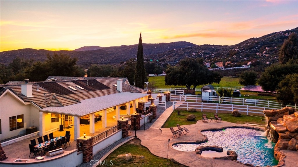 PRICE REDUCED! IMAGINE WHAT IT WOULD BE LIKE TO OWN THIS MAGICAL ESTATE RETREAT SURROUNDED BY OAK TREES LOCATED IN THE STUNNING COMMUNITY OF LA CRESTA. The property lies on 5 acres (approx). This estate home is also an Airbnb and is completely fenced. A creek also runs alongside the property at the bottom of the hill, adding to the dynamic and beautiful landscape of La Cresta. There is also an additional parcel that can be purchased separately (not included in sales price), which also includes plans for a 5Br, 3Ba, 5,012 sqft. (PLANS ARE INCLUDED IN SALE!) Both the home and vacant lot are approx. 5 acres each, for a total of 10 acres. This newly remodeled vacation home is a licensed Airbnb and has been in operation for over 1 year. Escape to this gorgeous Wine Country retreat for an unforgettable experience! The home has 5 bedrooms and 10 beds designed to accommodate up to 20 guests, making it the ideal place for large group getaways. The home has a game room with a pool table, arcade games, and a large flat-screen TV. For a more relaxed atmosphere, enjoy the oversized sofa in the living area or play a game of poker with friends. The kitchen is fully equipped for any meal you can imagine. Dine outdoors on the patio or cozy up inside for a meal with family and friends. The patio has a BBQ area for those that like to grill while taking in the breathtaking scenery around the property. The master suite has a King-sized bed, built-in trundle beds, and a luxurious bathroom with a stand-up shower and jetted tub. You'll find two guest bedrooms with bunk beds, each featuring a loft area. The rear bedroom serves as a cozy lounge area with a pull-out bed. Property has cross fencing and corrals. Bring your horses, dirt bikes, ATVs, and other outdoor toys to enjoy the wide-open space, as well as equestrian trails for horseback riding and hiking. Discover your own private haven in the backyard, with a stunning rock pool and spa with a waterfall and waterslide for hours of fun or relaxation. The backyard has a volleyball court and horseshoe pit for fun & games. The backyard has 3 firepits for evening gatherings. The home has a 6-car garage, making parking easy for everyone. Entire home is solar-powered. This property offers the perfect balance of fun and tranquility, while also providing a yearly income. Situated in a highly upscale community offering many amenities, dining & entertainment! This is a one-of-a-kind opportunity! Schedule your showing today!