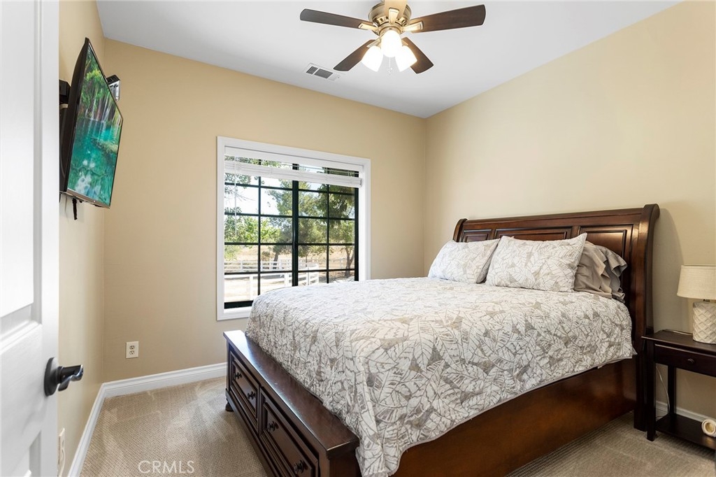 Welcome to Corte Jinete, an Amazing La Cresta Ranch. In total, this property offers around 6000 sq ft of living space, a guest house, studio apartment, 4 stall Barn, an arena, 6 car garage and totals 7 bedrooms, 7.5 bathrooms and over 5 usable acres. This home has just been completely redone, inside and out with all high end finishes, and the best options you can buy. The main house offers over 4800 sq ft of living space and acts like a single story with the master retreat and 1 other bedroom on the first floor. As you enter the home in your circular driveway you are greeted with rich wood lanai and hand laid flagstone from a Master Mason. The courtyard continues the hand laid flagstone as well as an impressive infinity edge pool with all new gorgeous tiles and new pebble tech finish. Enjoy entertaining your friends and family all year with a brand new outdoor kitchen with all the fixtures you will need, complete with refrigerators, ice maker, stainless steel grill, rotisserie cooker, sink, storage, coolers, New LED TVs and more. This is perfect for any size gathering or holiday. The Interior has fresh paint, all new high-end flooring, LED lighting, New bathrooms and much more. Your new custom kitchen offers the very best hand-built wood cabinets, industrial quality high-end appliances, a massive 6 burner gas cook top and the most luxurious granite counters you’ve ever seen, with hints of gold, silver, rose quartz and rich veins. Your guests will love the private ensuites in every room that surpass any 5 star resort or enjoy their own space in a detached 2 bed guest house. If you have hired help this property also includes a studio apartment. For the horse lovers, there is a 4 stall barn, with large turnouts, double hot water wash racks, fans, cameras to watch your horses and even TVs. The property has a new round pen and Large DG and Sand arena for all you rainers and jumpers. There is ample parking for all your toys with 2 oversized garages complete with 6 bays. Come see this in person to truly appreciate this masterpiece.