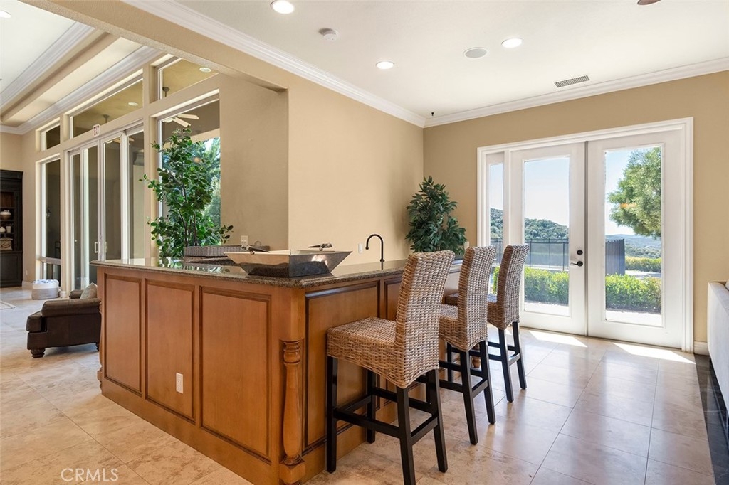 Interior Features Bar, Built-in Features, Cathedral Ceiling(s), Ceiling Fan(s), Coffered Ceiling(s), Copper Plumbing Full, Granite Counters, High Ceilings, Open Floorplan, Pantry, Recessed Lighting, Stone Counters, Storage, Wet Bar