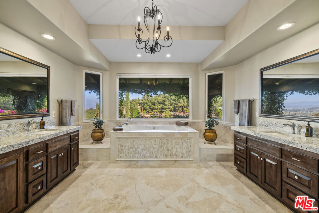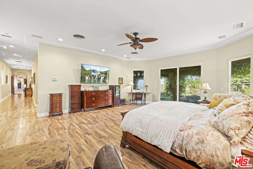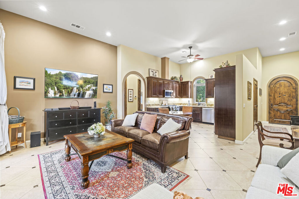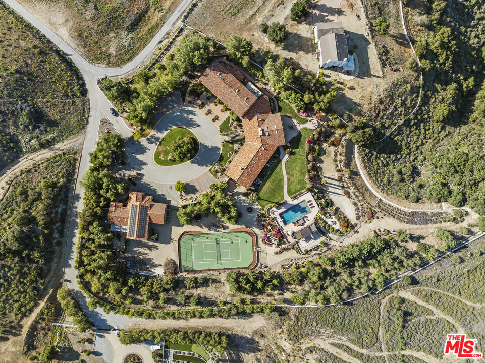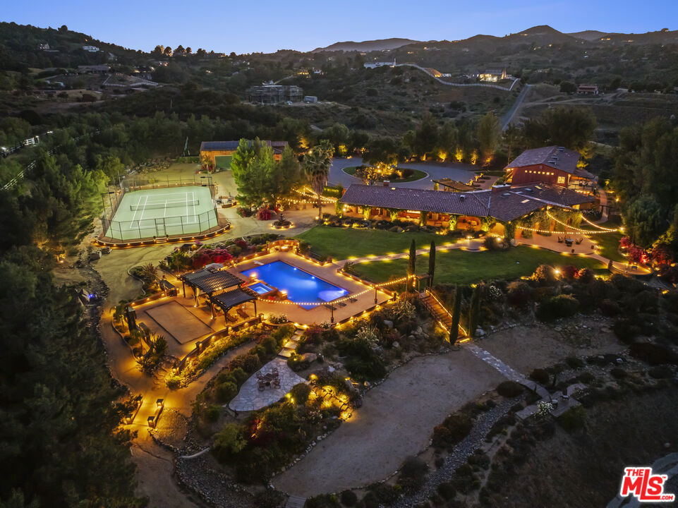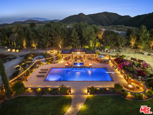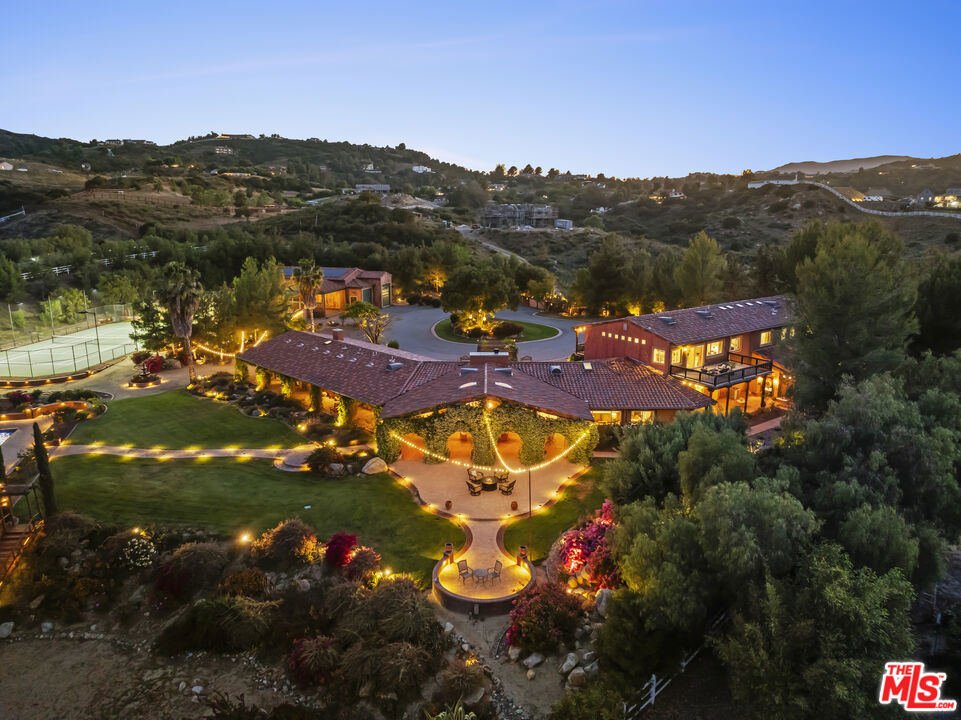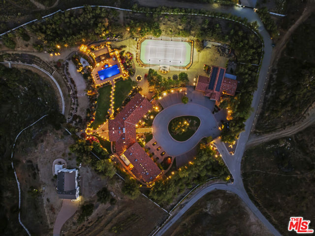 Welcome to your private paradise. Discover an extraordinary lifestyle in this breathtaking gated estate, nestled on over 5 pristine acres in the prestigious La Cresta community. Tucked away at the end of a private cul-de-sac, this expansive Hacienda-style main residence offers over 7,500 square feet of luxurious living space, seamlessly blending serenity, elegance, and panoramic views of the valley, mountains, and sparkling city lights. Step inside to find a gourmet, remodeled chef's kitchen outfitted with top-of-the-line stainless steel appliances, heated floors, and a charming dining nook. The main level showcases a secluded, opulent primary suite complete with a private office, large walk-in closet, and a spa-inspired bathroom, beautifully renovated for ultimate relaxation. The warm and inviting living room features a custom fireplace and vanishing doors that open effortlessly onto an expansive patiocreating the perfect setting for indoor-outdoor living and entertaining. Upstairs, you'll find five additional bedrooms and an oversized entertainment/media room with a private balcony, offering stunning views of the estate and surrounding landscape. The resort-style grounds are truly awe-inspiring. The outdoor spaces include a sparkling pool, a professional-grade tennis court, a built-in BBQ area, sauna, and ample green spaceyour own personal oasis where every day feels like a vacation. Guests will be delighted by the private casita, complete with a bedroom and kitchenette, as well as a separate 1,150 sq. ft. guest house featuring two bedrooms, full kitchen, living room, and a private backyard. Fully owned solar panel system (64 panels, 20.16 kW). Car enthusiasts and hobbyists alike will appreciate the expansive motor court, oversized garage/workshop with three 14-foot roll-up doors ideal for RVs, motorhomes, and more and an additional four-car garage with generous storage and parking options. Fully fenced and cross-fenced with a secure gated entrance, this exceptional property offers unparalleled privacy, space, and the finest in Southern California lifestyle living. A rare and remarkable offering come experience the magic of this one-of-a-kind La Cresta estate.