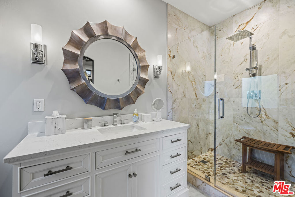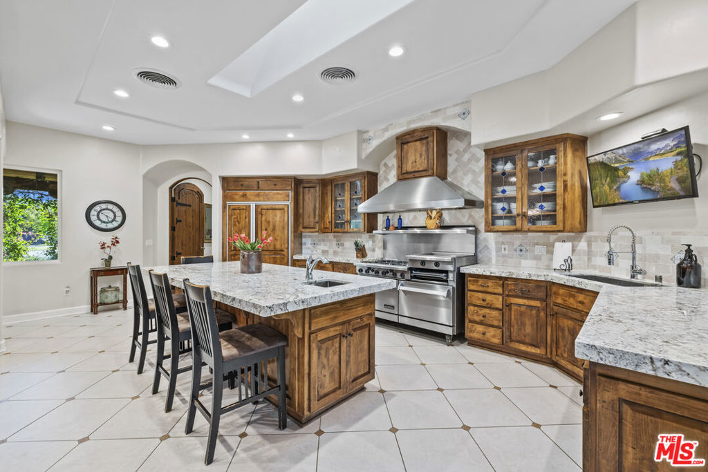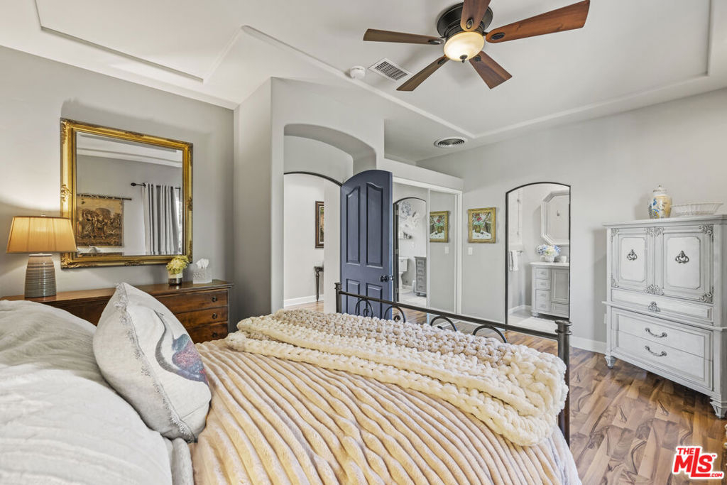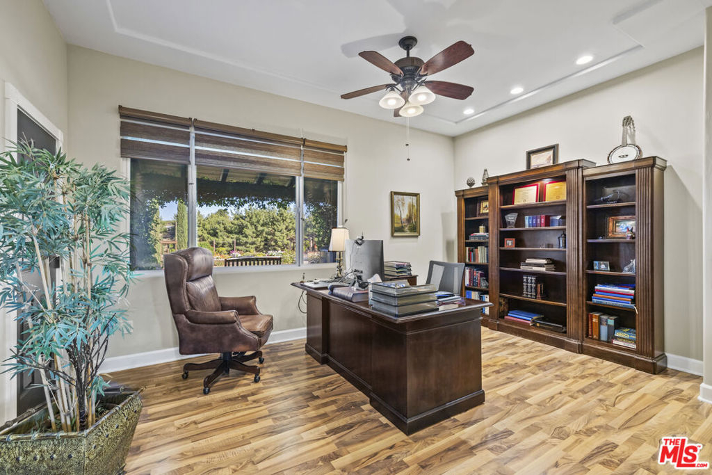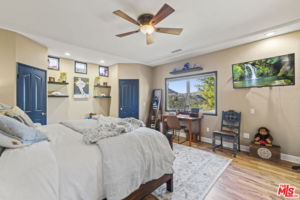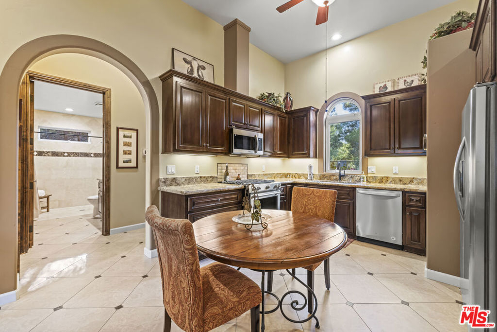 Welcome to your private paradise. Discover an extraordinary lifestyle in this breathtaking gated estate, nestled on over 5 pristine acres in the prestigious La Cresta community. Tucked away at the end of a private cul-de-sac, this expansive Hacienda-style main residence offers over 7,500 square feet of luxurious living space, seamlessly blending serenity, elegance, and panoramic views of the valley, mountains, and sparkling city lights. Step inside to find a gourmet, remodeled chef's kitchen outfitted with top-of-the-line stainless steel appliances, heated floors, and a charming dining nook. The main level showcases a secluded, opulent primary suite complete with a private office, large walk-in closet, and a spa-inspired bathroom, beautifully renovated for ultimate relaxation. The warm and inviting living room features a custom fireplace and vanishing doors that open effortlessly onto an expansive patiocreating the perfect setting for indoor-outdoor living and entertaining. Upstairs, you'll find five additional bedrooms and an oversized entertainment/media room with a private balcony, offering stunning views of the estate and surrounding landscape. The resort-style grounds are truly awe-inspiring. The outdoor spaces include a sparkling pool, a professional-grade tennis court, a built-in BBQ area, sauna, and ample green spaceyour own personal oasis where every day feels like a vacation. Guests will be delighted by the private casita, complete with a bedroom and kitchenette, as well as a separate 1,150 sq. ft. guest house featuring two bedrooms, full kitchen, living room, and a private backyard. Fully owned solar panel system (64 panels, 20.16 kW). Car enthusiasts and hobbyists alike will appreciate the expansive motor court, oversized garage/workshop with three 14-foot roll-up doors ideal for RVs, motorhomes, and more and an additional four-car garage with generous storage and parking options. Fully fenced and cross-fenced with a secure gated entrance, this exceptional property offers unparalleled privacy, space, and the finest in Southern California lifestyle living. A rare and remarkable offering come experience the magic of this one-of-a-kind La Cresta estate.
