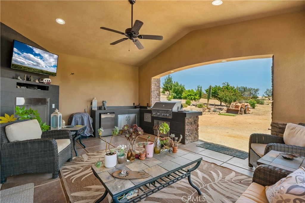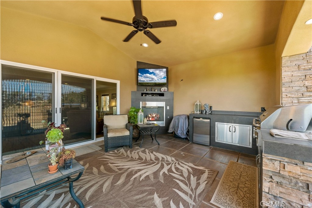 Do not miss this opportunity to purchase your La Cresta Dream home! This completely remodeled and upgraded estate shows like a model home; and includes not only a 3 car garage, but also a giant pull through 65' x 20' RV Garage with RV hookups. Every inch of this home has been customized and remodeled by the sellers with the highest quality of products and materials. It has an open concept floor plan with a giant great room which includes its own fireplace; a spacious chef's kitchen, formal living room and dining room combo complete with a real wood burning fireplace; three full bedrooms and two and a half bathrooms. The kitchen has two separate sinks, a giant kitchen island, high end Bosch stainless steel appliances, self closing cabinets and drawers, beautiful granite countertops, skylights, recessed lighting, and a walk in pantry. The kitchen is open to the great room which has large built ins, and a custom 12" slider which opens to the covered California room that boasts a cozy outdoor fireplace, a television, ceiling fan, and a built in barbeque island complete with a grill and mini fridge. There is a gated courtyard area that is currently being used as a garden, and too large of an assortment of shade and fruit trees to list. There is grass surrounding most of the home, grape vines, patios, and plenty of wide open usable space to customize. The home has been rewired, re-piped, and completely remodeled! It has highly durable wood looking ceramic tile flooring, dual paned windows, retractable window shades throughout, crown molding, and each bathroom has been completely remodeled and includes beautiful Swarovski knobs, and designer accents. The three car garage has plenty of storage space with custom cabinets and a sink! This estate truly has it all, including its own tractor which the sellers are including in the sale, and it shows like a real gem! Schedule your personal tour today before its too late!