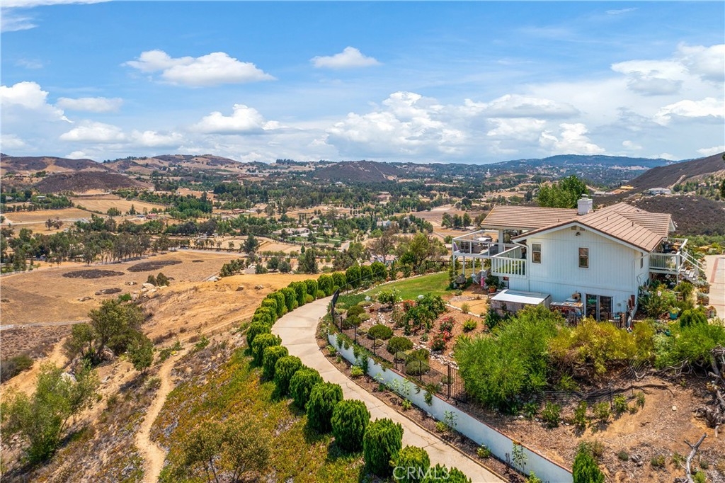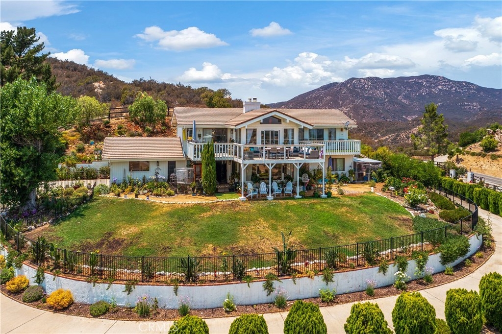 This FOEVER VIEW HOME WITH COTTAGE CHARM sits on ***11 ACRES*** in the heart of LA CRESTA. The stunning views will captivate you, as you gaze over the entire valley of La Cresta with views of the Cleveland National Forest, Mount Baldy, Mount San Jacinto, Mount Palomar and the city lights & hot-air balloons of the Temecula Valley. The privately gated, fully fenced grounds have interconnecting walk-paths to charming destinations throughout the property, including flower gardens at every turn, a 3-stall barn, round pen, and a flat, usable pasture. PLENTY OF ROOM FOR A GUEST HOUSE, ADUs, BARN...The RECENTLY RENOVATED home exudes country charm and boasts views from every room. Take in the scenery from the massive wrap-around viewing deck, where you will catch breathtaking sunrises and sunsets, and hear the call of the wild daily. This quiet street is close in, yet rarely traveled, providing a lovely combination of convenience and serenity. …Discover the Santa Rosa Plateau Lifestyle with 5-acre minimum parcels, friendly neighbors, star-filled skies and peace – all just minutes from the conveniences of town, schools, restaurants, hospitals, grocery stores, and the 15 Freeway. Here we have all the room in the world to take walks, breathe clean air, grow gardens/vineyards/groves/orchards, partake in equestrian activities and community events, raise animals, and hike miles of trails via the robust private recreational trail system and the thousands of acres of the Ecological Reserve…All of this within 20 minutes to town, and less than 1.5 hours from Los Angeles, San Diego, Orange County, Palm Springs, and Big Bear. Come discover the La Cresta Life!