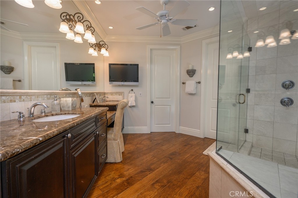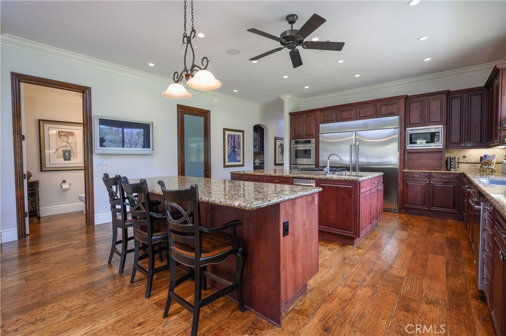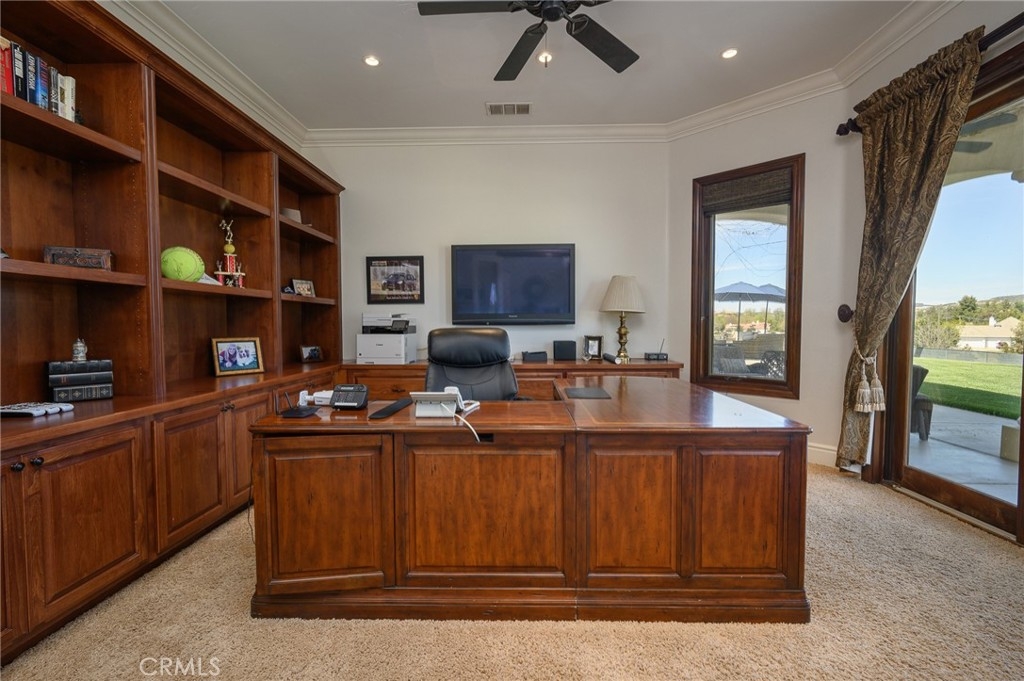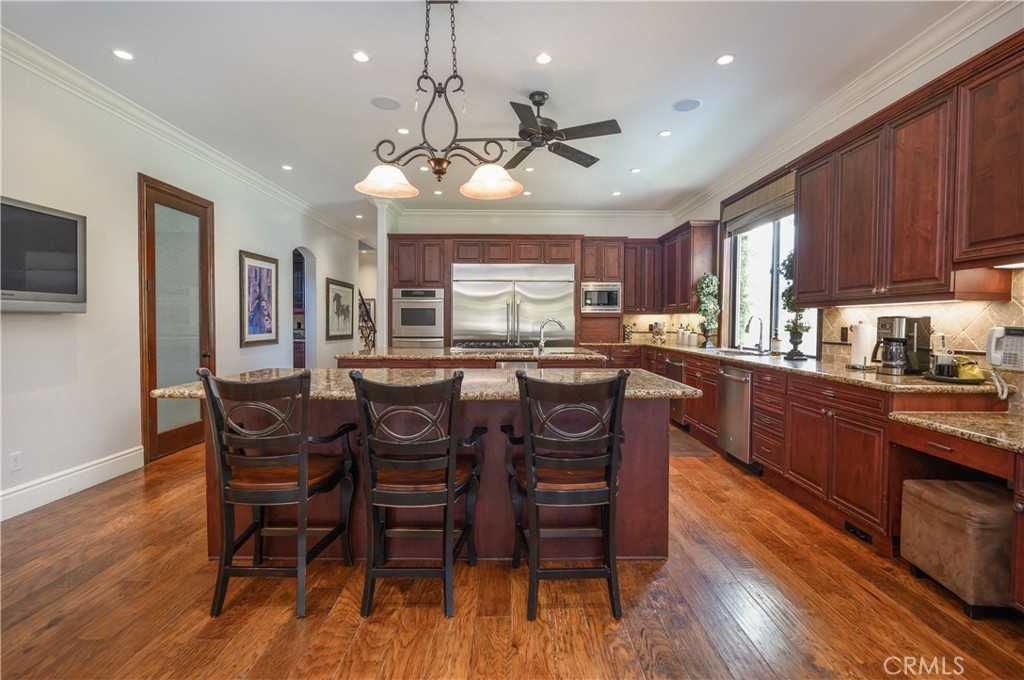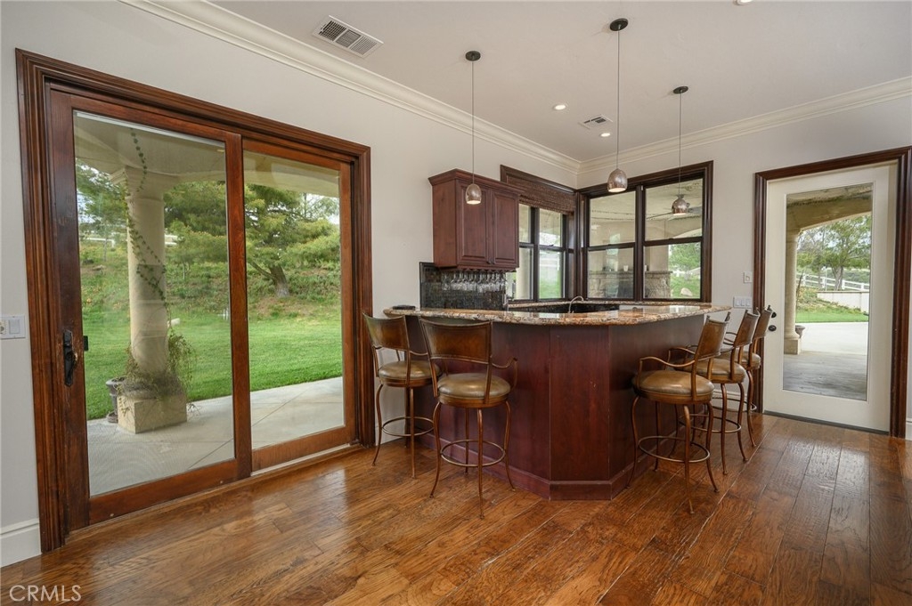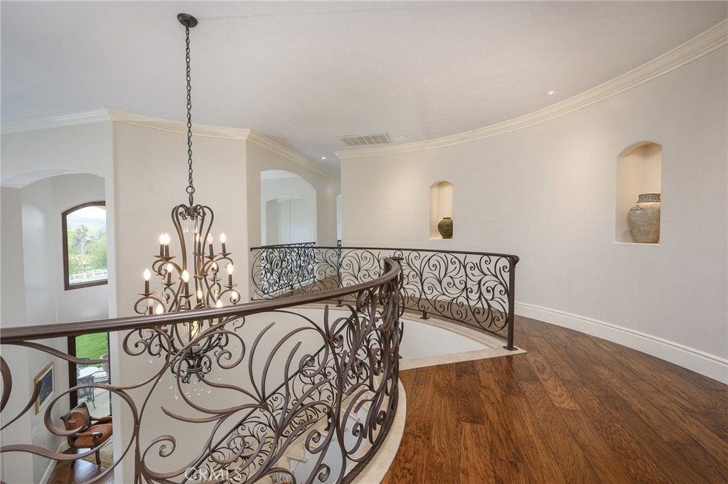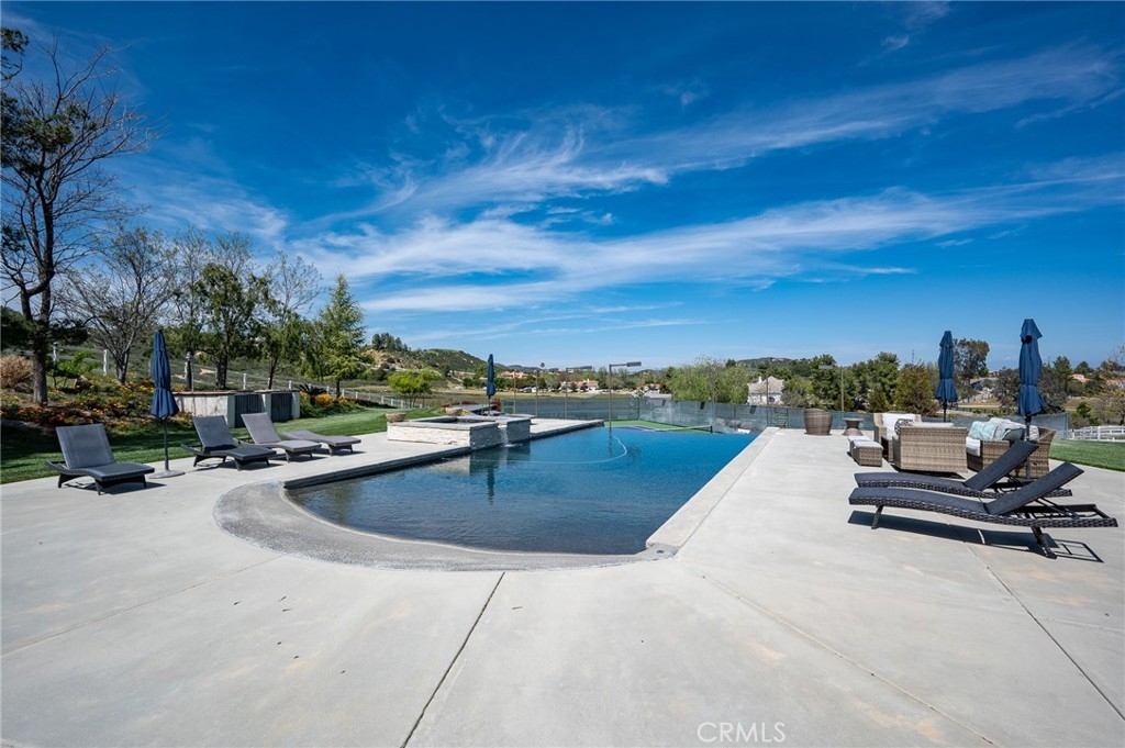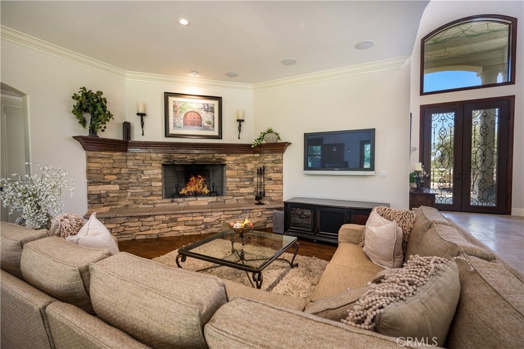 Live in the Luxury of a Stunning La Cresta Estate, sprawling 6,079 SF (+/-). This Custom Home sits on a Hillside w/ 5+ acres and a Resort Style Infinity Edge Pool, Spa, Lighted Pickle Ball/Tennis Court, and Horse Facilities. The Home Features 6 Bedrooms & 8 Bathrooms (including Casita w/ Kitchenette and Private Entrance), Formal Entry w/ Custom Tall Front Doors, Luxurious Dining & Living Rooms w/ Vaulted Ceilings and Dual Sided Fireplace and a Butler’s Pantry. Entertainer's Dream Kitchen w/ 2 Elongated Granite Serving Islands, 2 Dishwashers, Viking Refrigerator/Freezer & Large Walk-in Pantry. The Kitchen is Adjacent to the Great Room and Custom Bar (w/ Wine Refrigerator) and Custom Stone Fireplace. The Home also Features a 9 Seat Theater Room w/ 110" HD Screen & Surround Sound System. Spacious Office w/ Custom Cabinetry. Formal Spiral Stone Staircase w/ Chandelier leads you to the Upstairs Master Suite w/ Retreat and Fireplace. Luxury Master Bath w/ Dual Vanity Sinks, Spa & Shower, and Large Walk-in Closet. Adjacent to the Master Bedrooms is a Fitness Room w/ a Balcony and Majestic Views. Two Laundry Rooms on each Level. Expansive 8 Car Garage plus Parking Area for RV and Trailers. Beautifully Manicured Grounds. Horse Facilities w/ a 4 Stall Barn & Large Riding Arena & Paddocks. Energy efficient Home w/ Solar (60 Panels Paid Off), Back-up Power System, and Well Water for Lush Lawns and Foliage All Year Round.