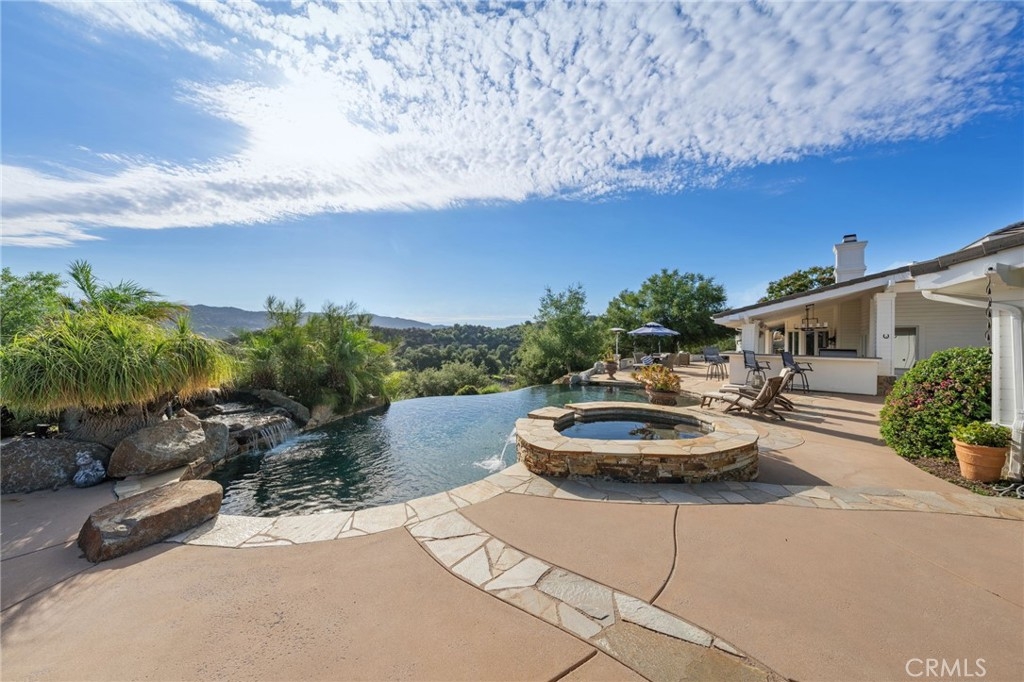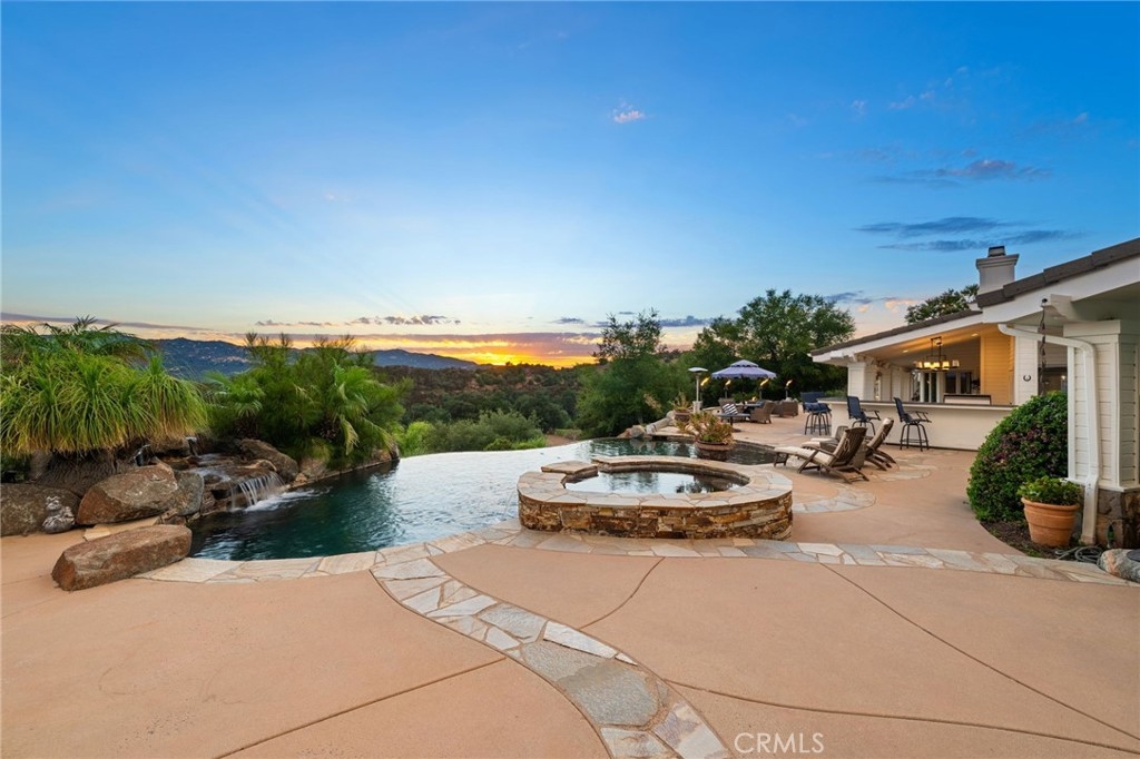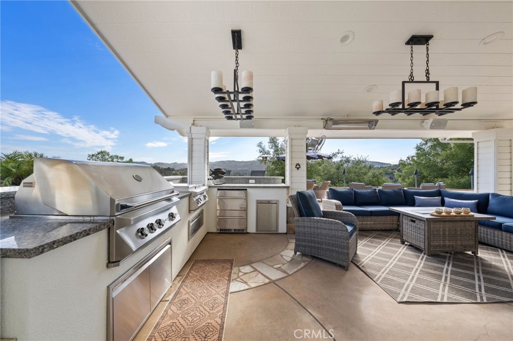 -Outside, an immaculate outdoor kitchen complements the breathtaking infinity-edge pool and spa, complete with an outdoor shower.