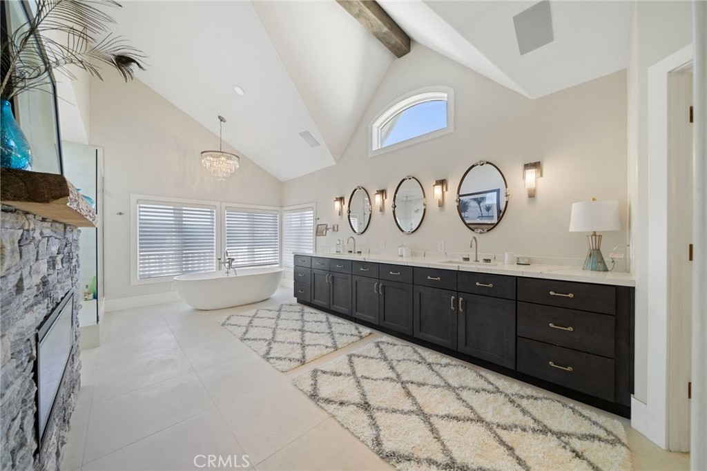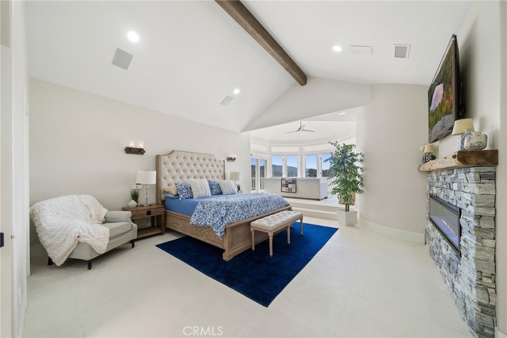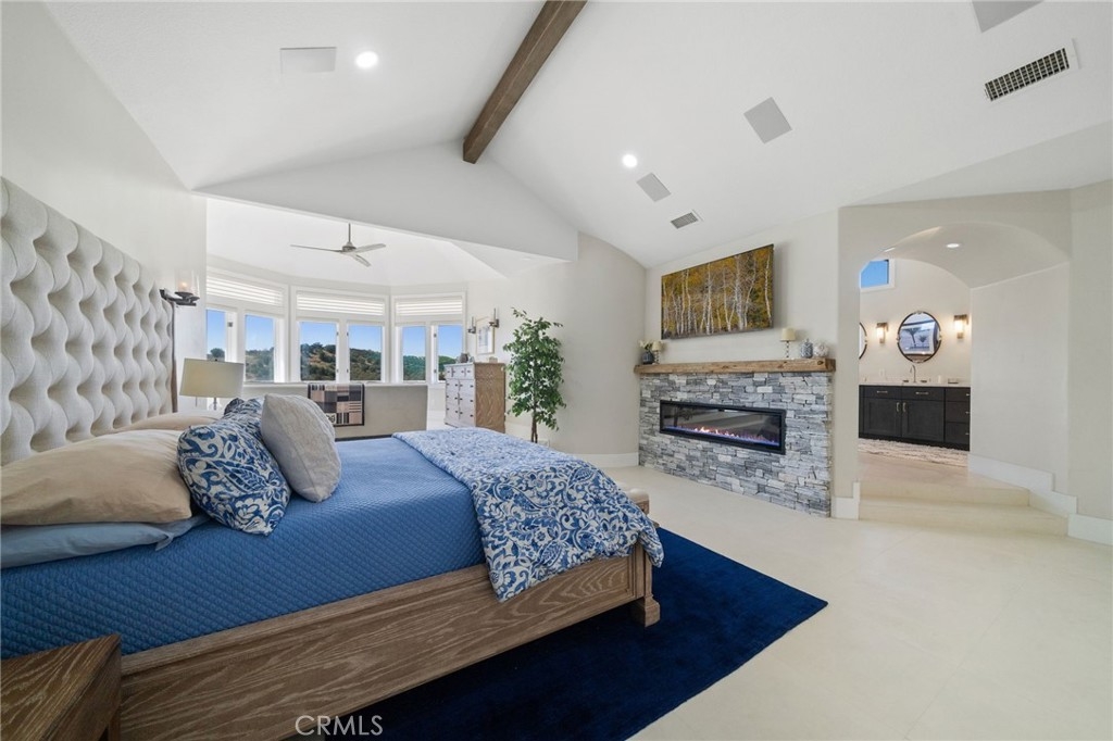 -A primary suite designed for relaxation, featuring its own fireplace, a generous sitting area, and a spa-inspired bathroom.