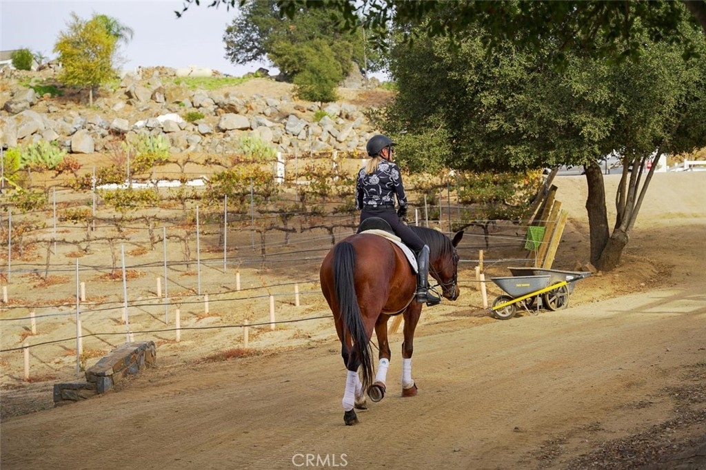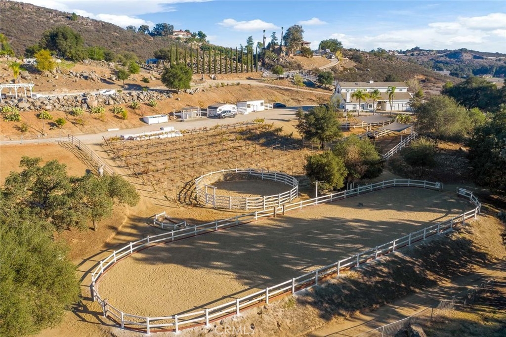 HORSE LOVERS, GET READY! This perfectly located working ranch has over 10 acres on the Santa Rosa Plateau (10-acre minimum area) 4 gated entries, Breezeway barn w/TWO remodeled apartments (2BD & 1BD included in the total bedroom count w/3 in main house), Two arenas (new 20mx60m dressage court w/professionally laser-graded with silica sand & GGT felt fiber blend footing, plus 50'x170' sand arena), 60' round pen, 2 acres for grassy pasture, 9 paddocks, Service roads throughout, 12'x24' storage outbuilding, Cross-fencing, your own water well…and Boarders, who, if you choose to continue, may cover the carrying cost of this epic equestrian estate. So, that’s the news on the equestrian part of the property, which is fantastic & RARE, even on this horse-centric Plateau…And, onto the recently remodeled 5000+sf main house. Very often, amazing horse usability & functionality mean you may compromise luxury inside the home. Welcome to the marriage of both! This gorgeous custom home offers a balance of comfort & luxury, including a large, bright office, a true chef’s kitchen, which opens to the great room w/massive wood-beamed ceilings & fireplace. Retire, up just a few steps, to your primary suite with fireplace, spacious elevated sitting area, and spa-worthy bathroom. Or, have a night-cap in your private theater room with brand new projecting equipment. Cook inside or out, in your extensive outdoor kitchen next to the infinity-edge pool with spa. Stroll through the grounds, past the Koi pond to the newly constructed custom chicken coop, and meander the trails with multiple sitting areas within canopies of ancient oak trees. This is truly the gem of the Plateau, representing all things delightful about country equestrian living. EQUESTRIANS, THIS IS THE REAL DEAL…Discover the Santa Rosa Plateau Lifestyle with 5-acre minimum parcels, friendly neighbors, star-filled skies and peace – all just minutes from the conveniences of town, schools, restaurants, hospitals, grocery stores, and the 15 Freeway. Here we have all the room in the world to take walks, breathe clean air, grow gardens/vineyards/groves/orchards, partake in equestrian activities and community events, raise animals, and hike miles of trails via the robust private recreational trail system and the thousands of acres of the Ecological Reserve…All of this within 20 minutes to town, and less than 1.5 hours from Los Angeles, San Diego, Orange County, Palm Springs, and Big Bear. Come discover the La Cresta Life!