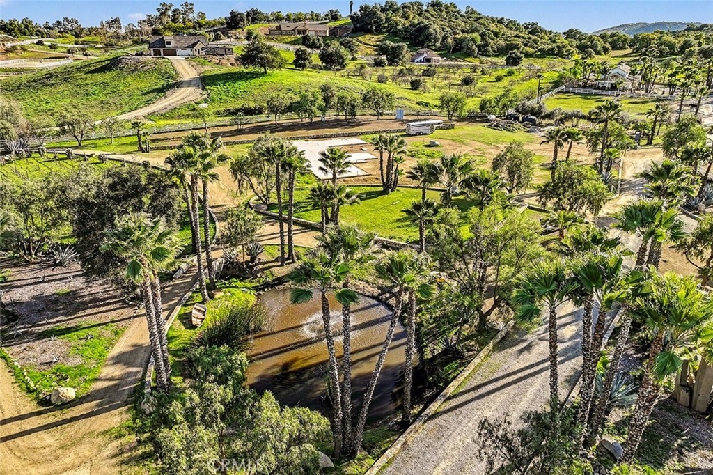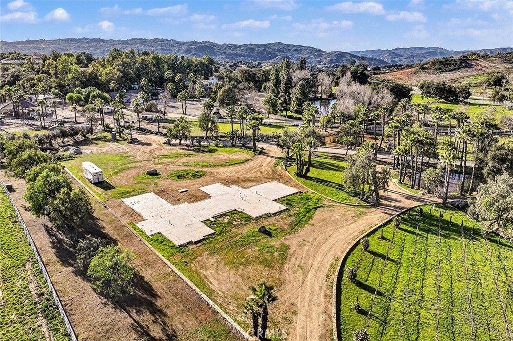 OPPORTUNITY KNOCKS! This fully developed 9+acre ranch on the Santa Rosa Plateau is equipped with everything you need for epic equestrian living…including engineered architectural plans, house pad, ground plumbing and select materials for the future 3500sf home. This pristine ranch with THREE APARTMENTS was designed with no costs spared, evident from the moment you enter through the custom gate and drive past sprawling pastures, 2 vineyards, artistic stone monuments, ponds, mature trees, fruit orchard, natural stone bridges, covered lighted round pen and multiple paddocks. The massive 2-story breezeway barn hosts equestrian facilities, including 3 large stalls with covered in-and-outs, a studio apartment, patio, tack room and storage. The attached RV garage will accommodate a 40+foot motorhome and still offers an entire garage for further storage, workshop and covered patio. On the upper level are two more apartments – a 1-BD/1-Bath with full kitchen, living room and balcony, and a cool “Speakeasy” themed studio with large living room, kitchenette and bathroom. Plans for a 3500sf custom single-story home were previously submitted and are ready to jumpstart your construction process. Enjoy DIRECT TRAIL ACCESS, storage galore with three 40-ft containers, covered parking structures, stone-lined roads circumnavigating the entire property, dry streambeds, covered shade structures for the horses, cross-fencing, private water well, irrigation & electrical throughout, new solar system, Tesla power walls and the unrivaled peace of living in a quiet, yet convenient part of this equestrian enclave community of like-minded, horse-friendly neighbors. This gem of the Plateau must be experienced to fully take in this unique opportunity! *****Discover the La Cresta Lifestyle: 5-acre minimum parcels (10-acre minimum in SR West), just minutes to schools, restaurants, hospitals, stores, 15 Fwy & Temecula Wine Country. Enjoy this peaceful ranch community w/no commercial businesses, robust social activities, miles of private community trails & 1000s of acres of Ecological Reserve…All less than 1.5 hours from LA, SD, OC, Palm Springs & Big Bear. Discover the country, yet convenient, lifestyle of La Cresta, Tenaja & the Communities of the Santa Rosa Plateau!