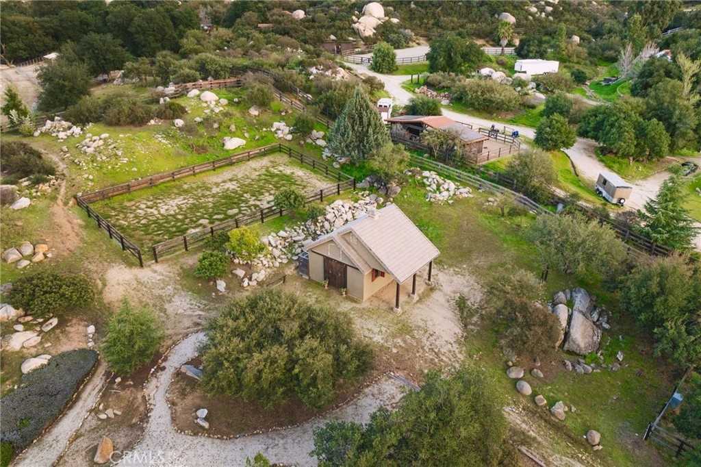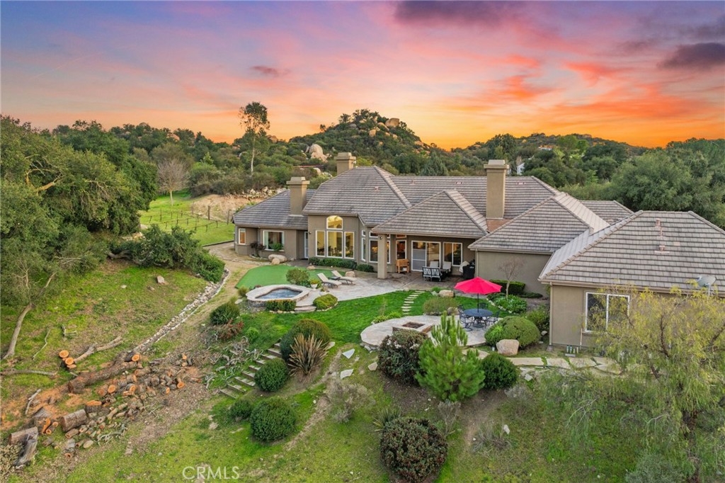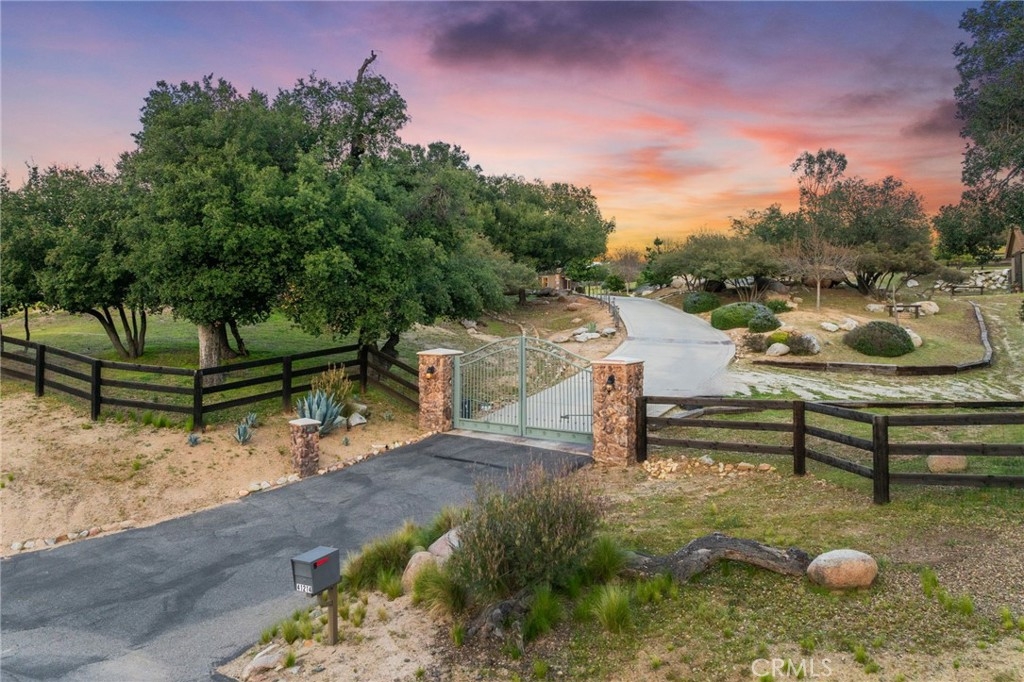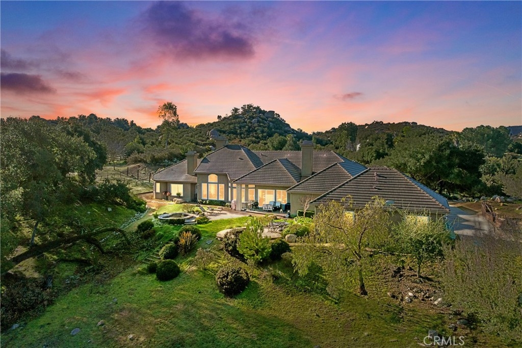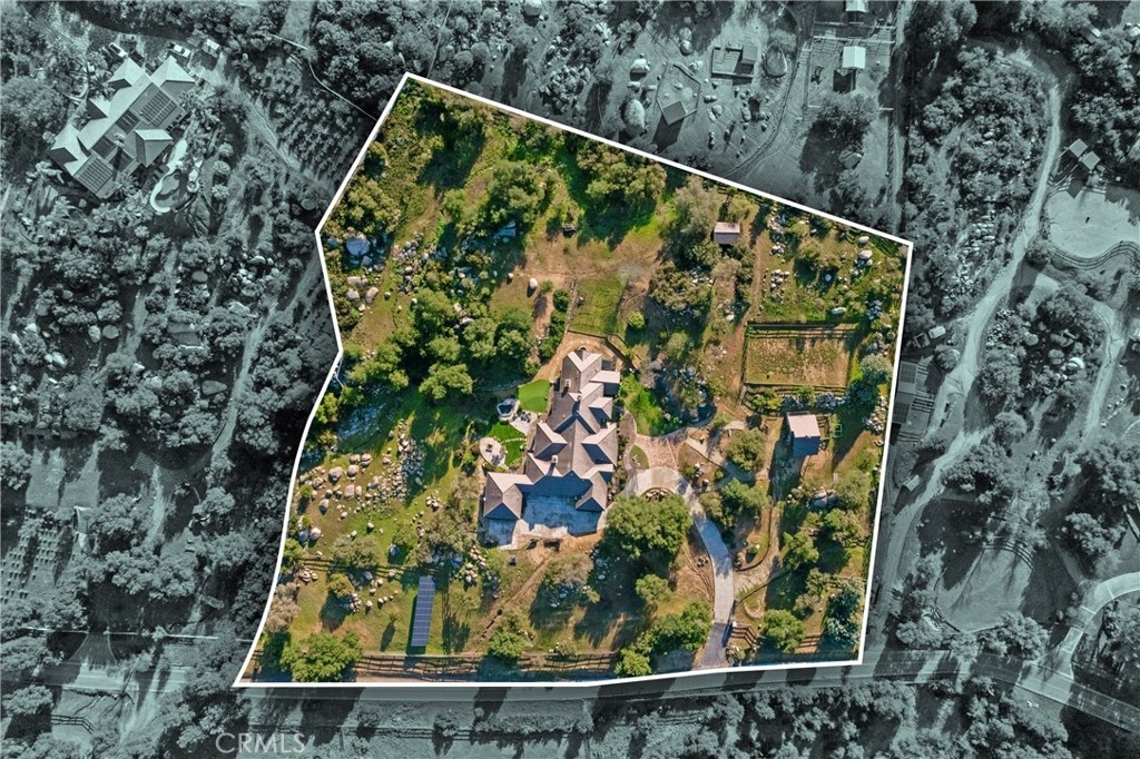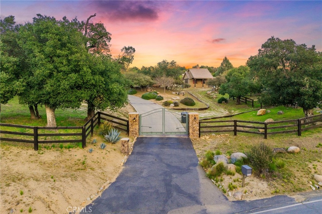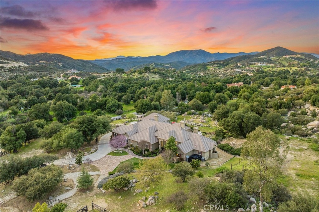 Discover this exquisite Equestrian estate w/2 GORGEOUS homes on a vast property in the La Cresta Highlands of the Santa Rosa Plateau. Just 10 miles off the freeway you will be transported not only into a cooler climate but a peaceful and secluded lifestyle. The private gate leads to an elevated retreat surrounded by mature oaks and dramatic rockscapes, w/every window offering breathtaking nature views. The impressive single-story 4395 square-foot MAIN home boasts 4 bedrooms, 2 en-suites, Jack & Jill bathroom, w/optional 5th bedroom or office. Enter through custom double doors into a grand formal dining room w/ 15 ft ceilings adorned with a fireplace, +travertine floors throughout. To the right ~ office/bedroom, and to the left, the PRIVATE DREAM master suite featuring a two-sided fireplace, seating area, dual vanities, his & her walk-in closets, a luxurious jacuzzi tub, spacious shower with an attached unique and private outdoor shower, as well as sliding door access to the backyard. Beyond the dining room are 3 sizable bedrooms with walk-in closets, a powder room, an oversized laundry room, walk-in linen closet, and custom hallway storage cabinets. Off the hall, the large GREAT room w/yet another fireplace that flows into a chef's DREAM kitchen equipped with high-end appliances, granite counters, extensive cabinetry, and generous walk-in pantry. Views to rear yard from the great room, CANNOT BE OVERSTATED w/large built-in spa that pairs great with a starlit sky, a built-in fire pit, and your own personal putting green. Like Wine? Enjoy the fruits of your labor w/ the vanity vineyard completing this enchanting package. The Second home (built in 2015) offers 888 sq. ft. of living space with a lovely kitchen, dining & family room, 2 bed/1 bath, +stackable washer/dryer. Relish the spacious 4-car garage w/ workshop area, epoxy floors, storage cabinets, a garage sink, and a Tesla electric car charger. Equestrian amenities include a 2 stall barn w/ overhang, 3 pastures, a horse shower, & direct access to the HOA-maintained horse trails. Additional features: RV parking w/ full hookups, ADT alarm system, wireless access points strategically placed throughout the main & guest houses to enhance Wi-Fi connectivity, surround sound, a chicken coop, gardening beds, heavy-duty custom-built storage shed, as well as a coyote safe 2-sided dog run to protect your small furry friends. Paid-off, ground-mount solar panels are included (installed 2021).