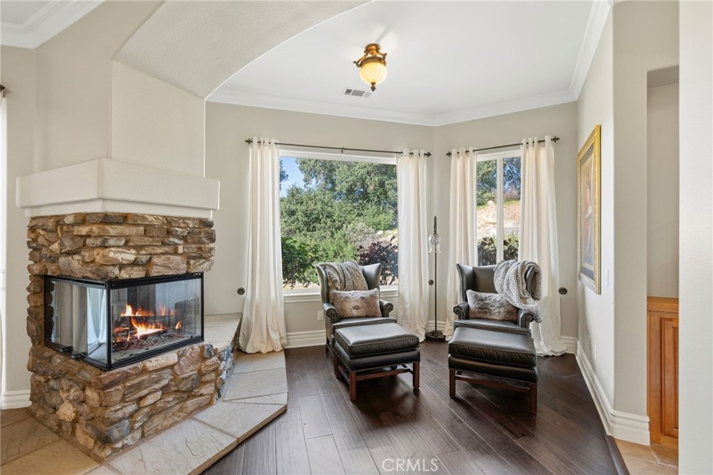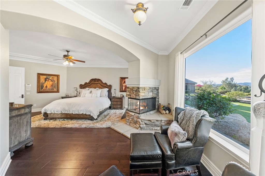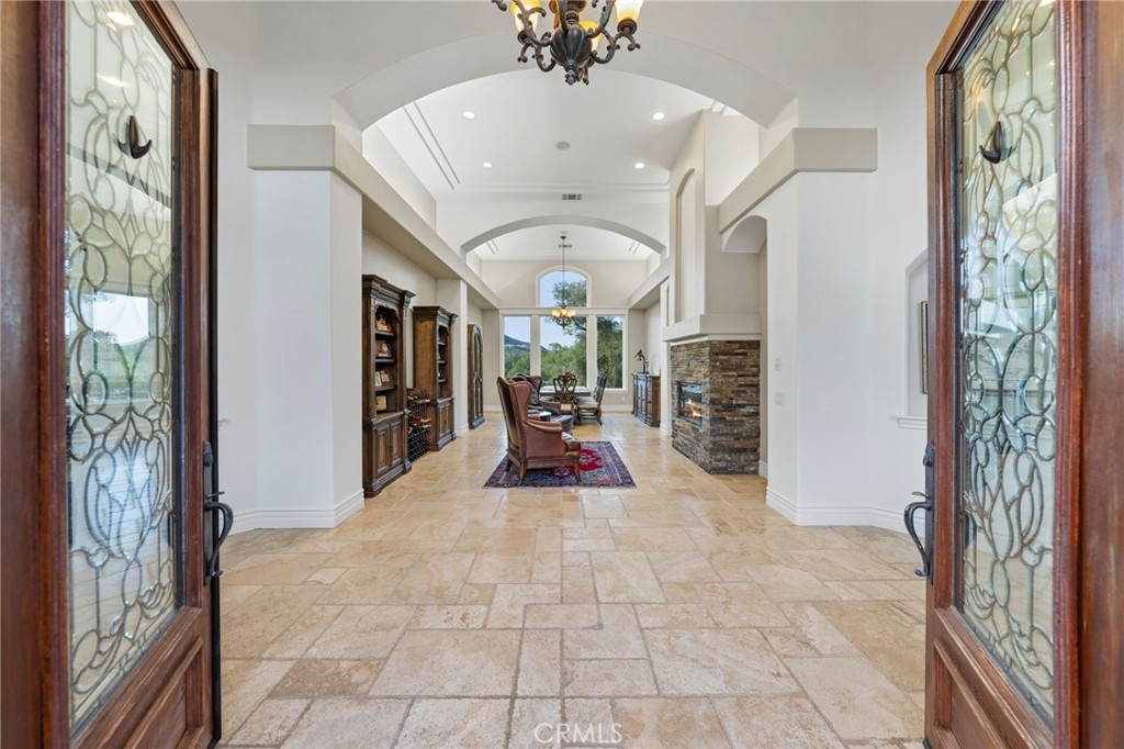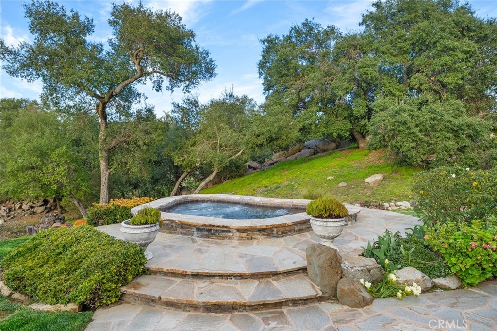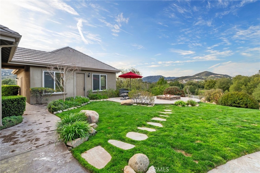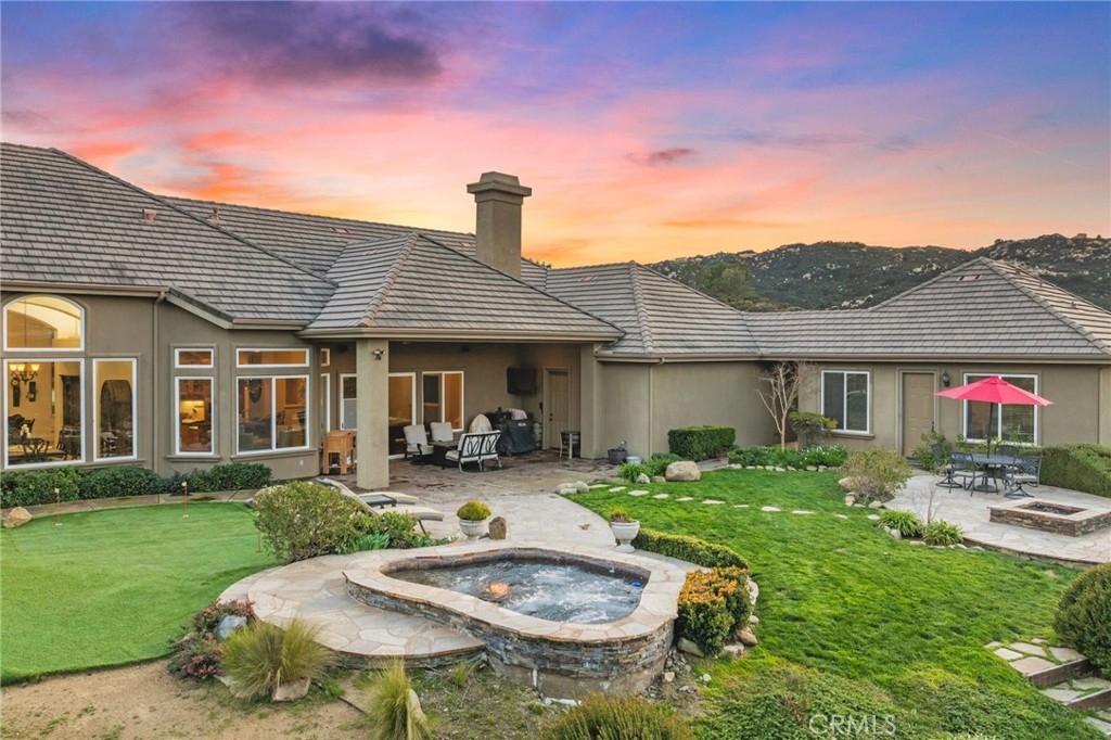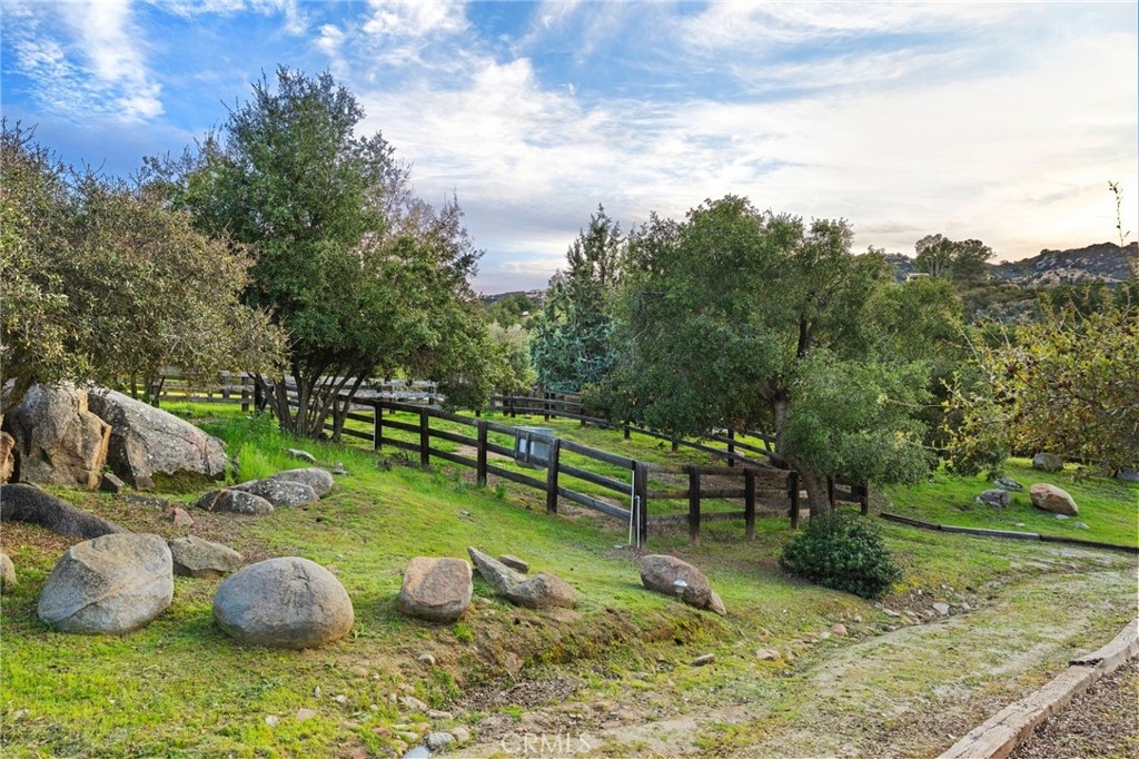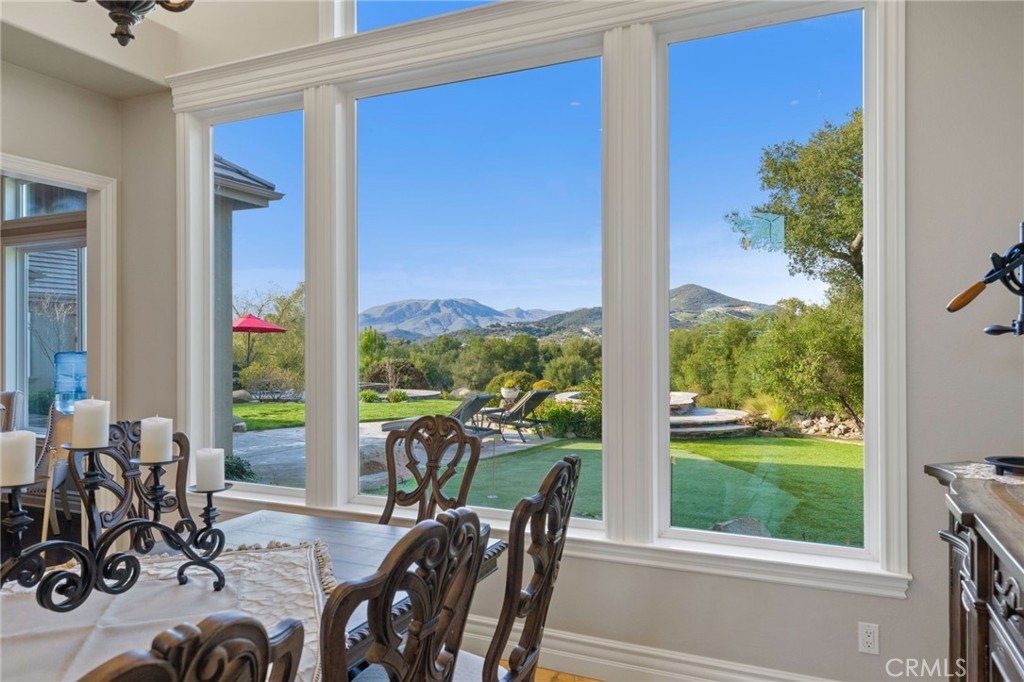 Discover this exquisite Equestrian estate w/2 GORGEOUS homes on a vast property in the La Cresta Highlands of the Santa Rosa Plateau. Just 10 miles off the freeway you will be transported not only into a cooler climate but a peaceful and secluded lifestyle. The private gate leads to an elevated retreat surrounded by mature oaks and dramatic rockscapes, w/every window offering breathtaking nature views. The impressive single-story 4395 square-foot MAIN home boasts 4 bedrooms, 2 en-suites, Jack & Jill bathroom, w/optional 5th bedroom or office. Enter through custom double doors into a grand formal dining room w/ 15 ft ceilings adorned with a fireplace, +travertine floors throughout. To the right ~ office/bedroom, and to the left, the PRIVATE DREAM master suite featuring a two-sided fireplace, seating area, dual vanities, his & her walk-in closets, a luxurious jacuzzi tub, spacious shower with an attached unique and private outdoor shower, as well as sliding door access to the backyard. Beyond the dining room are 3 sizable bedrooms with walk-in closets, a powder room, an oversized laundry room, walk-in linen closet, and custom hallway storage cabinets. Off the hall, the large GREAT room w/yet another fireplace that flows into a chef's DREAM kitchen equipped with high-end appliances, granite counters, extensive cabinetry, and generous walk-in pantry. Views to rear yard from the great room, CANNOT BE OVERSTATED w/large built-in spa that pairs great with a starlit sky, a built-in fire pit, and your own personal putting green. Like Wine? Enjoy the fruits of your labor w/ the vanity vineyard completing this enchanting package. The Second home (built in 2015) offers 888 sq. ft. of living space with a lovely kitchen, dining & family room, 2 bed/1 bath, +stackable washer/dryer. Relish the spacious 4-car garage w/ workshop area, epoxy floors, storage cabinets, a garage sink, and a Tesla electric car charger. Equestrian amenities include a 2 stall barn w/ overhang, 3 pastures, a horse shower, & direct access to the HOA-maintained horse trails. Additional features: RV parking w/ full hookups, ADT alarm system, wireless access points strategically placed throughout the main & guest houses to enhance Wi-Fi connectivity, surround sound, a chicken coop, gardening beds, heavy-duty custom-built storage shed, as well as a coyote safe 2-sided dog run to protect your small furry friends. Paid-off, ground-mount solar panels are included (installed 2021).