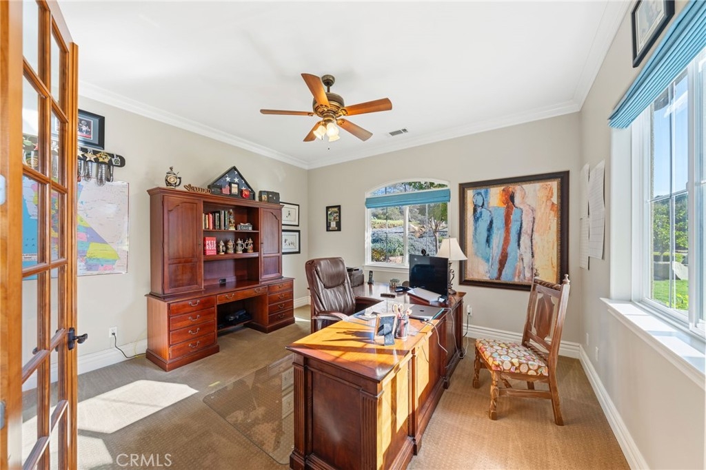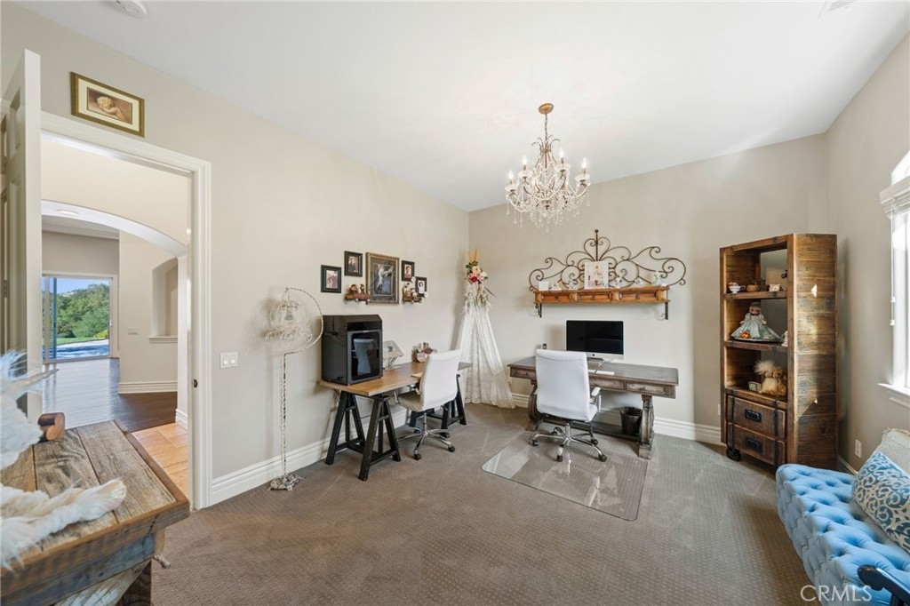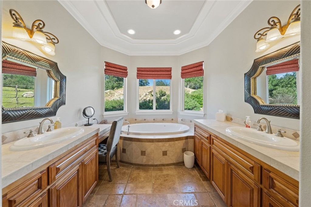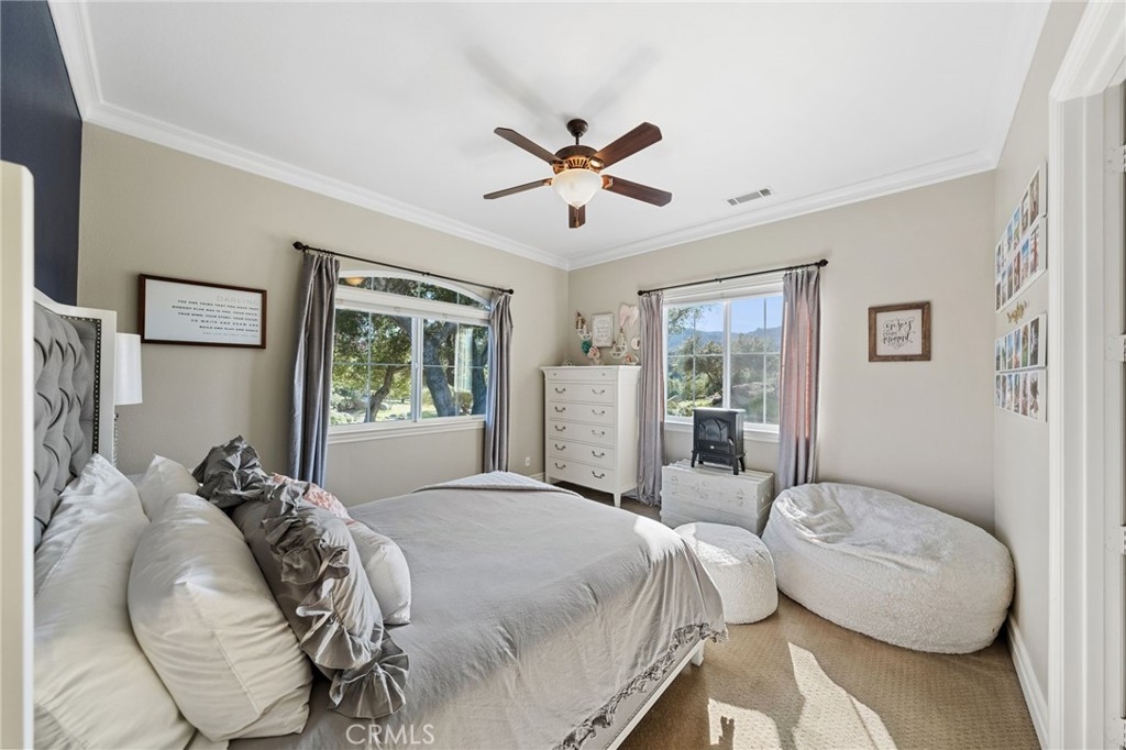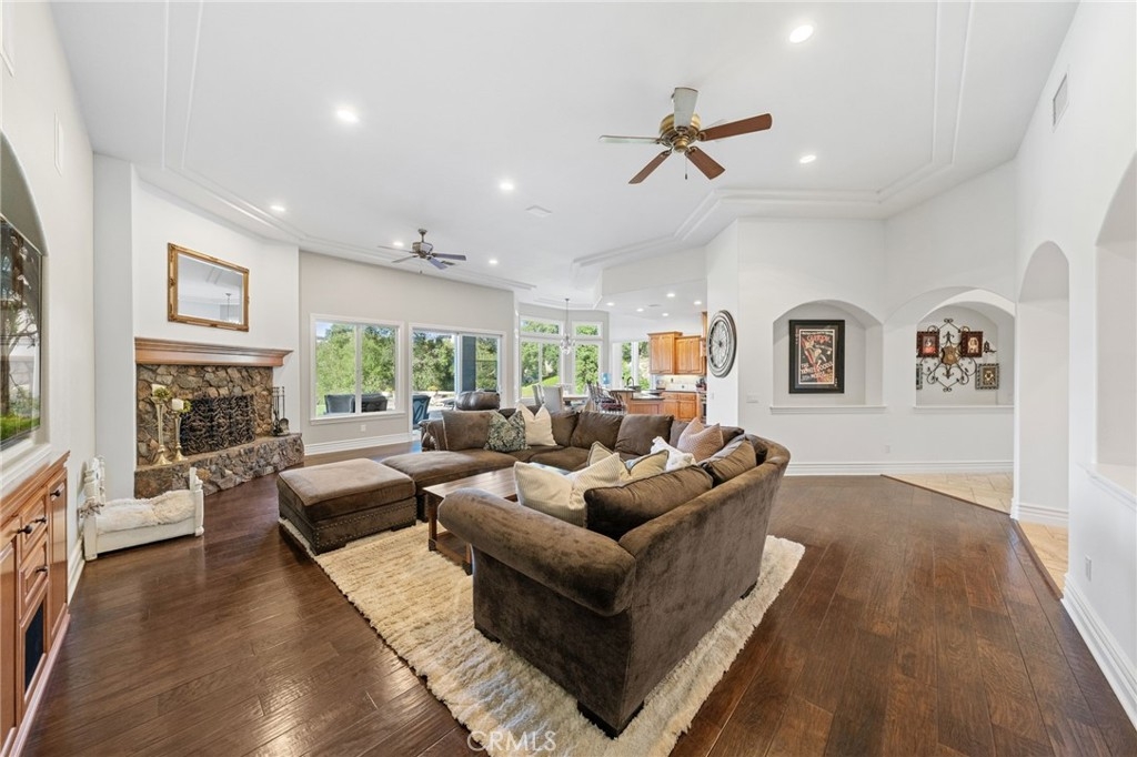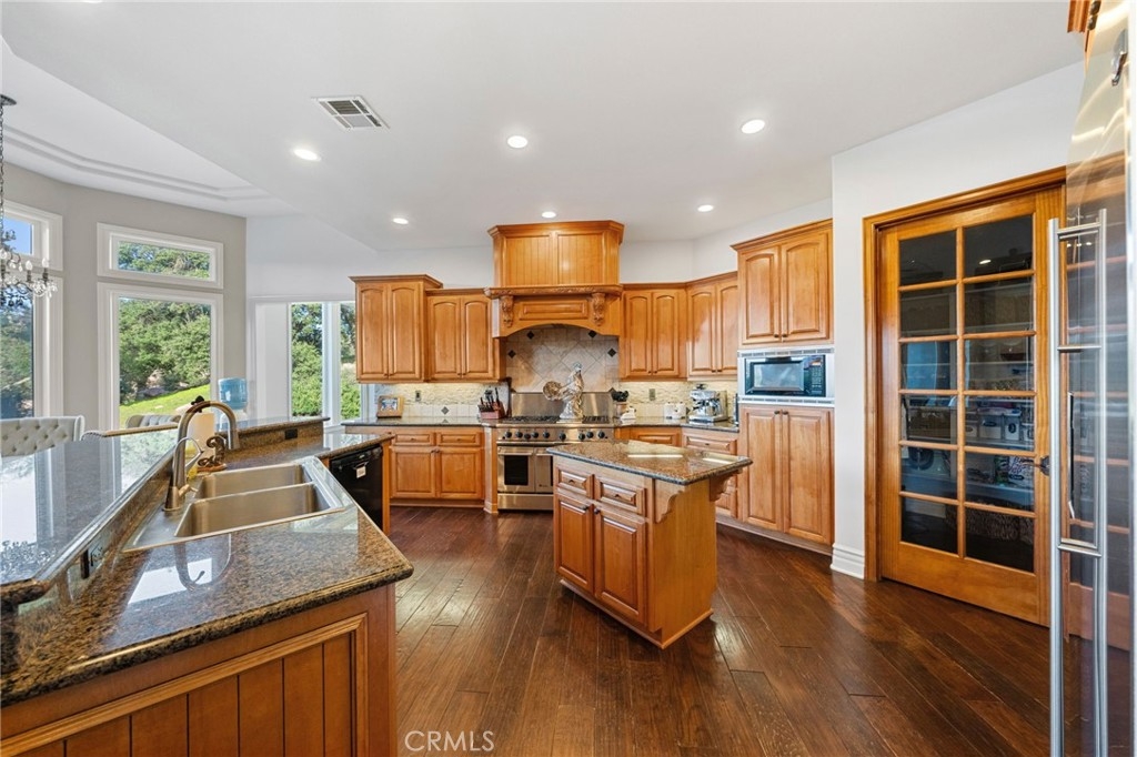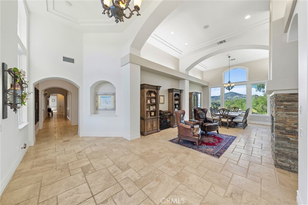 Discover this exquisite Equestrian estate w/2 GORGEOUS homes on a vast property in the La Cresta Highlands of the Santa Rosa Plateau. Just 10 miles off the freeway you will be transported not only into a cooler climate but a peaceful and secluded lifestyle. The private gate leads to an elevated retreat surrounded by mature oaks and dramatic rockscapes, w/every window offering breathtaking nature views. The impressive single-story 4395 square-foot MAIN home boasts 4 bedrooms, 2 en-suites, Jack & Jill bathroom, w/optional 5th bedroom or office. Enter through custom double doors into a grand formal dining room w/ 15 ft ceilings adorned with a fireplace, +travertine floors throughout. To the right ~ office/bedroom, and to the left, the PRIVATE DREAM master suite featuring a two-sided fireplace, seating area, dual vanities, his & her walk-in closets, a luxurious jacuzzi tub, spacious shower with an attached unique and private outdoor shower, as well as sliding door access to the backyard. Beyond the dining room are 3 sizable bedrooms with walk-in closets, a powder room, an oversized laundry room, walk-in linen closet, and custom hallway storage cabinets. Off the hall, the large GREAT room w/yet another fireplace that flows into a chef's DREAM kitchen equipped with high-end appliances, granite counters, extensive cabinetry, and generous walk-in pantry. Views to rear yard from the great room, CANNOT BE OVERSTATED w/large built-in spa that pairs great with a starlit sky, a built-in fire pit, and your own personal putting green. Like Wine? Enjoy the fruits of your labor w/ the vanity vineyard completing this enchanting package. The Second home (built in 2015) offers 888 sq. ft. of living space with a lovely kitchen, dining & family room, 2 bed/1 bath, +stackable washer/dryer. Relish the spacious 4-car garage w/ workshop area, epoxy floors, storage cabinets, a garage sink, and a Tesla electric car charger. Equestrian amenities include a 2 stall barn w/ overhang, 3 pastures, a horse shower, & direct access to the HOA-maintained horse trails. Additional features: RV parking w/ full hookups, ADT alarm system, wireless access points strategically placed throughout the main & guest houses to enhance Wi-Fi connectivity, surround sound, a chicken coop, gardening beds, heavy-duty custom-built storage shed, as well as a coyote safe 2-sided dog run to protect your small furry friends. Paid-off, ground-mount solar panels are included (installed 2021).