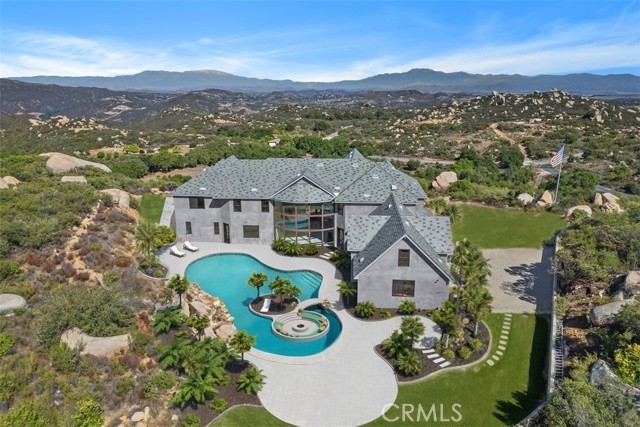 Welcome home to this Impressive Custom built estate with Stunning Million $$$ Views! Situated on 15.59 pristine acres within the prestigious La Cresta Highlands area. Imagine being King of the hill with the Cleveland National Forest just out you backyard! California's Best Kept Secret! A place where dreams come true! Featuring approximately 7000 square feet of living space with two separate stair cases, 4 bedrooms, 4 baths, formal living & dining, Chef's kitchen with massive pantry, office, theatre room, primary suite with vaulted ceiling, huge walk-in closet & partially finished luxury primary bath. The gourmet Chef's kitchen is designed for your personal choice of custom cabinetry, counter tops, faucet's and fixture's. It is equipped with Viking stainless steel appliances including dual oversized refrigerator's, oversized freezer, 8 burner cook range w/ two ovens, hood, microwave, dishwasher & trash compactor. Other features include exquisite custom steel doors, wrought iron railings, floor to ceiling windows, upstairs balcony, designed for future elevator, Lorex security system w/ 8 camera's, expansive laundry room with sink and loads of cabinets, huge walk-in attic storage, upstairs reading nook, interior fire sprinklers, propane line in formal living room for future fireplace, water line in pantry & above cook range in kitchen for future pot filler, high-end Vermont Slate roof, 22 foot ceilings, wired for data, sound & Cat 6, four-4 ton AC units,70 PSI pressure pump, 5000 gallon water storage tank, 4" & 1.5" outlets w/ fire hoses & great area's for executive pool, outdoor kitchen, guest home, barn, tennis courts, groves or anything else ones heart may desire! The estate is partially fenced with an exceptional estate gate entry! The property can also be sub-divided into 3 five acre parcels. Please see the supplement sheet for a list of items that need to be completed to obtain the certificate of occupancy. La Cresta Highlands Life offers exceptional opportunity for country living at its finest with twinkling star filled skies, scenic open space, private trail systems, Santa Rosa Plateau Ecological Reserve & lovely community events! Located within minutes from all modern conveniences, award winning schools, restaurants, premier golf courses, shopping malls, hospitals, world renowned wineries, resorts & I-15 freeway. Less than 1.5 hours from LA, San Diego, Palm Springs, Beaches, Mountains & Amazing Theme Parks. The epitome of peace & tranquility!