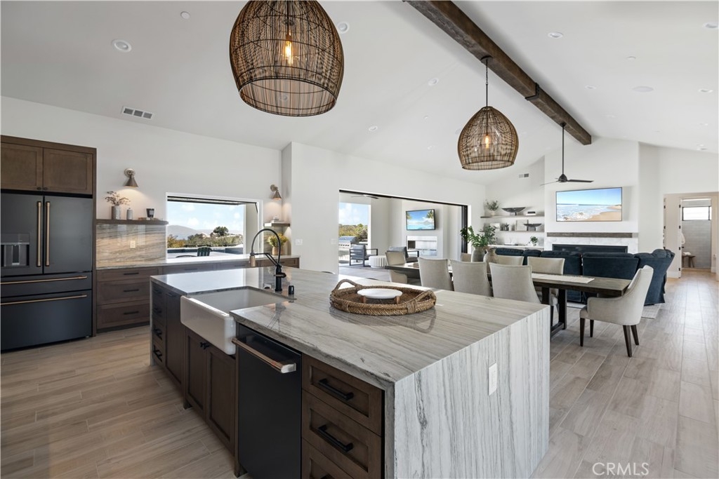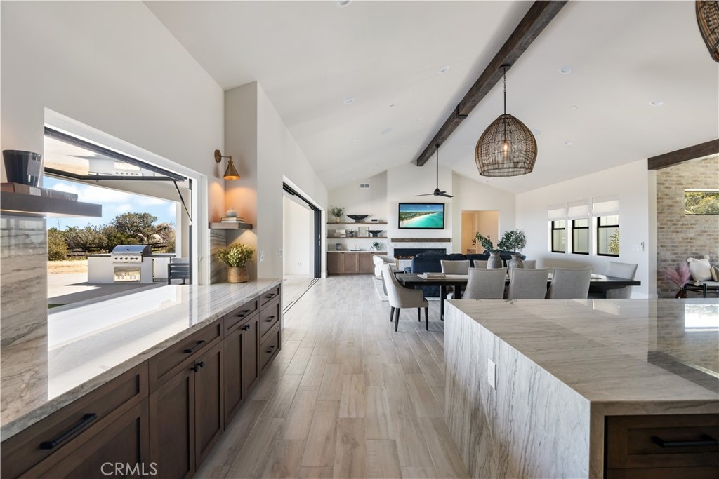 Beamed Ceilings, Built-in Features, Cathedral Ceiling(s), Ceiling Fan(s), Dry Bar, High Ceilings, Open Floorplan, Pantry, Recessed Lighting, Wired for Sound