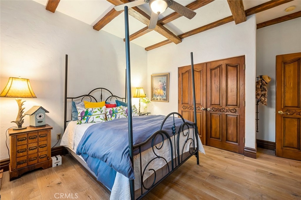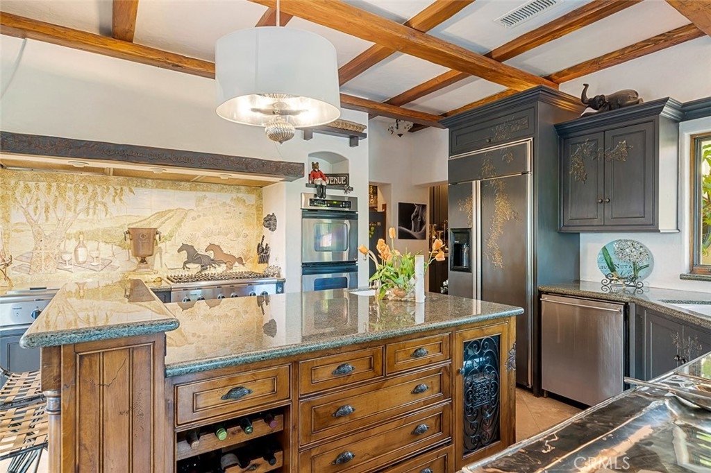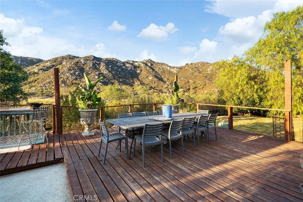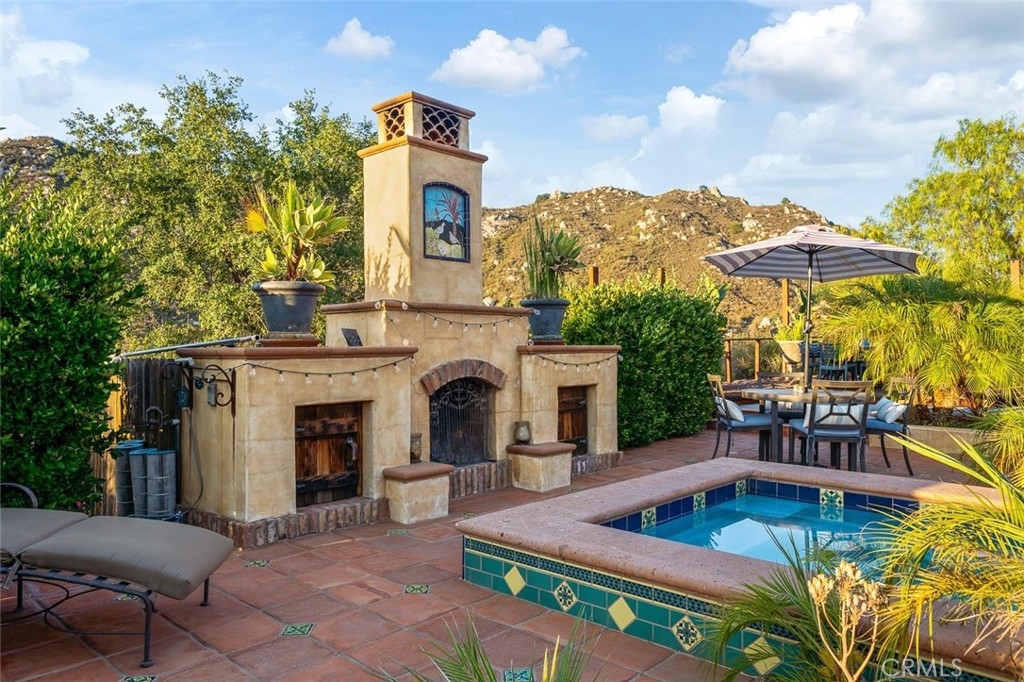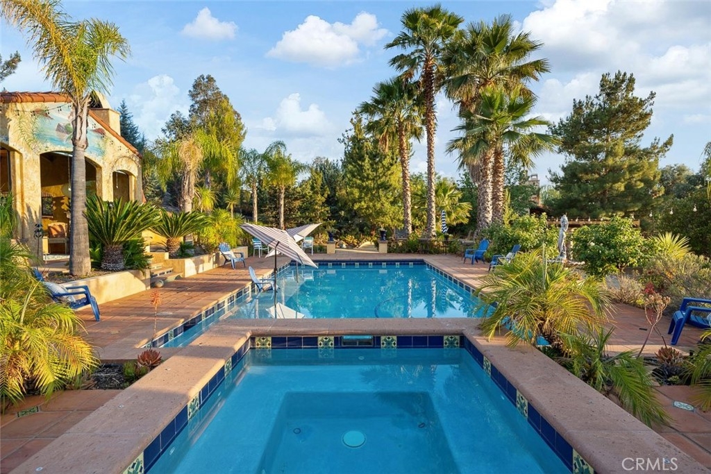 MOTIVATED SELLER! This Magical Tenaja Equestrian Estate must be experienced to be believed! An absolute UNICORN in its achievement of luxury, creativity, sustainability, whimsy, usability & privacy, it is a feast for the senses! Upon entering the private gate, you will find artistic details at every turn, including a dreamy pool cabana w/roll-up doors, kitchenette, sleeping quarters & bathroom - surely commanding a waiting list with your family & friends! The main house is a cornucopia of creative treats – the legacy of the professional craftspeople who built, with love, this MASTERPIECE. Enjoy the Great Room w/aged beams, vaulted wood ceiling & custom masonry fireplace, a gourmet kitchen, custom tiles fired on property by the artist & imported European barnwood 8-inch plank flooring throughout. The primary bedroom suite & guest bedrooms reside on the main floor with the loft converted to a full suite with kitchenette & bathroom. Minimized utility costs are a product of the custom cinderblock construction, which assures a lovely & consistent ambient temperature. The slight elevation of the home on the parcel provides for a never-to-be-obstructed sunset view over the Fish & Game Conservancy, Tenaja Valley & Cleveland National Forest. Outside, be prepared to be joyfully lost in whimsy & surprise, with lighted walk paths, bridges, a seasonal meandering stream, lush, yet low-maintenance landscape, fruit trees, the relaxing daybed ‘Citrus Shed’ & the world’s cutest cowboy-town chicken coop. Happy horses may also join you in this surreal adventure, as the equestrian area is equipped with 2 covered stalls, a round pen, huge turnouts, tack shed & ample trailer parking. In addition to the 4-car garage & 2 additional covered parking spaces, there is an RV pad with hook-ups. If you appreciative fine detail & true craftsmanship, you must see this UNICORN!…Discover the Santa Rosa Plateau w/5-acre minimum parcels, friendly neighbors, star-filled skies & peace–all just minutes from town, schools, restaurants, hospitals, grocery stores & the 15 Freeway. Here we enjoy space to take walks, breathe clean air, grow gardens/vineyards/groves/orchards, partake in equestrian activities & community events, raise animals & hike miles of trails via the robust private recreational trail system & thousands of acres of the Ecological Reserve…All of this w/in 20 minutes to town & less than 1.5 hours from LA, San Diego, OC, Palm Springs & Big Bear. Welcome to La Cresta & Tenaja Life!